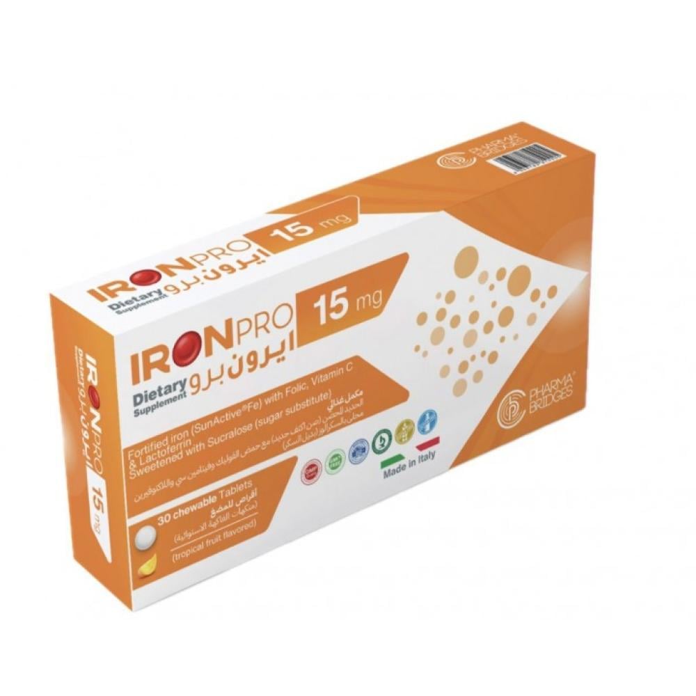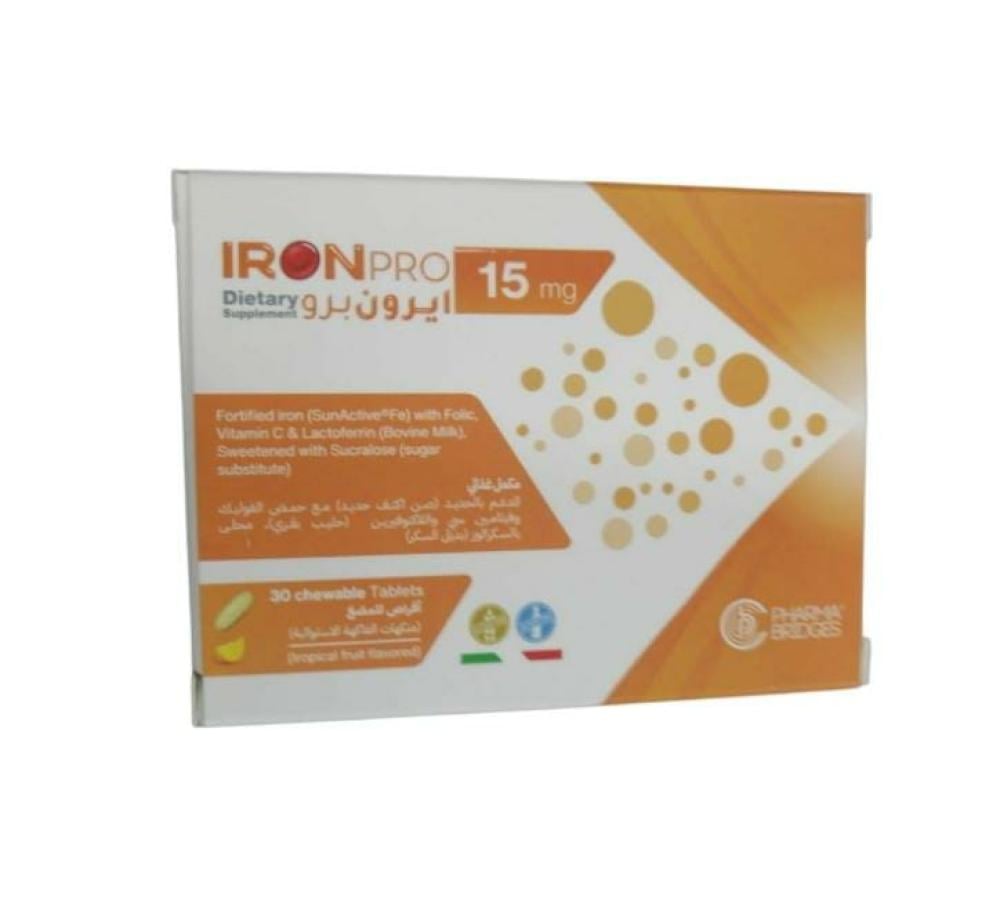 - الحديد (بيروفوسفات الحديد – SunActive® Fe): 15 ملغ