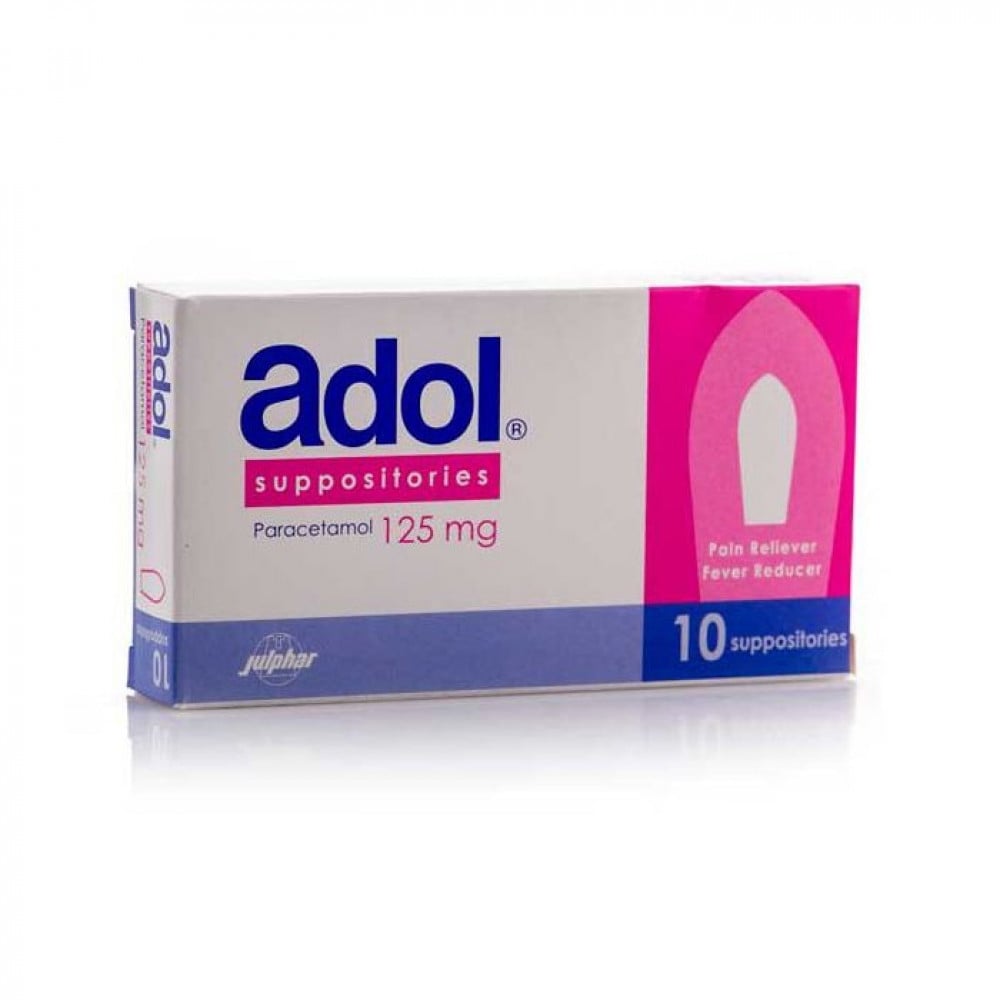 أدول، تحاميل، باراسيتامول 125 مجم، مسكن وخافض للحرارة - 10 قطع