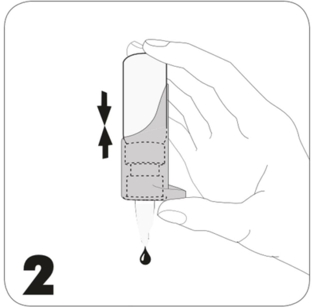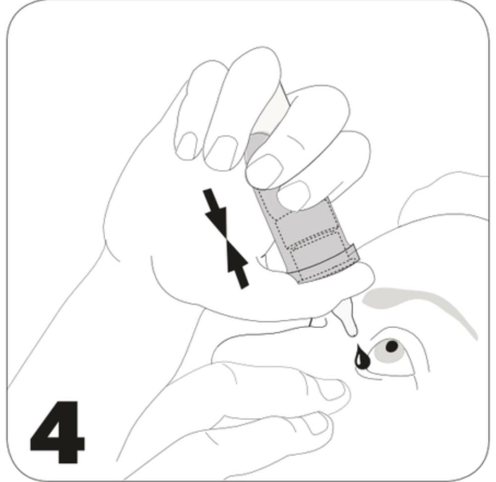 اضغط على الزجاجة لتحرير قطرة واحدة في العين. استخدم قطرة ثانية فقط إذا لم تصل الأولى.