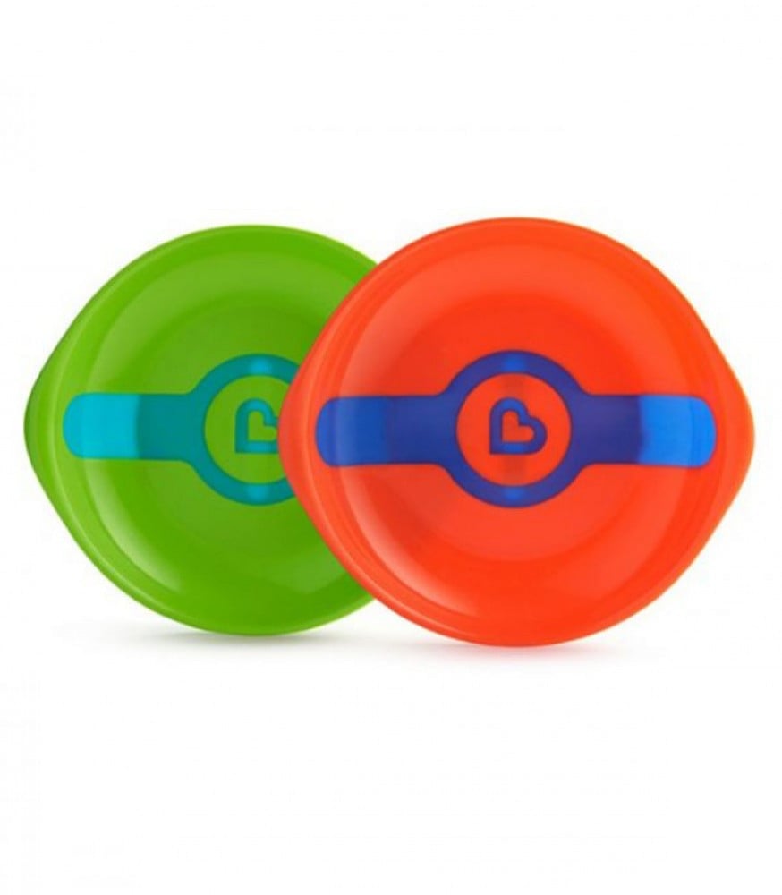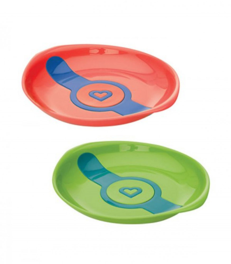 مجموعة الأطفال المكونة من صحنين ملونين مع شريط خاص يتغير لونه لتحذيرك عندما يكون الطعام ساخنًا جدًا بالنسبة للطفل.