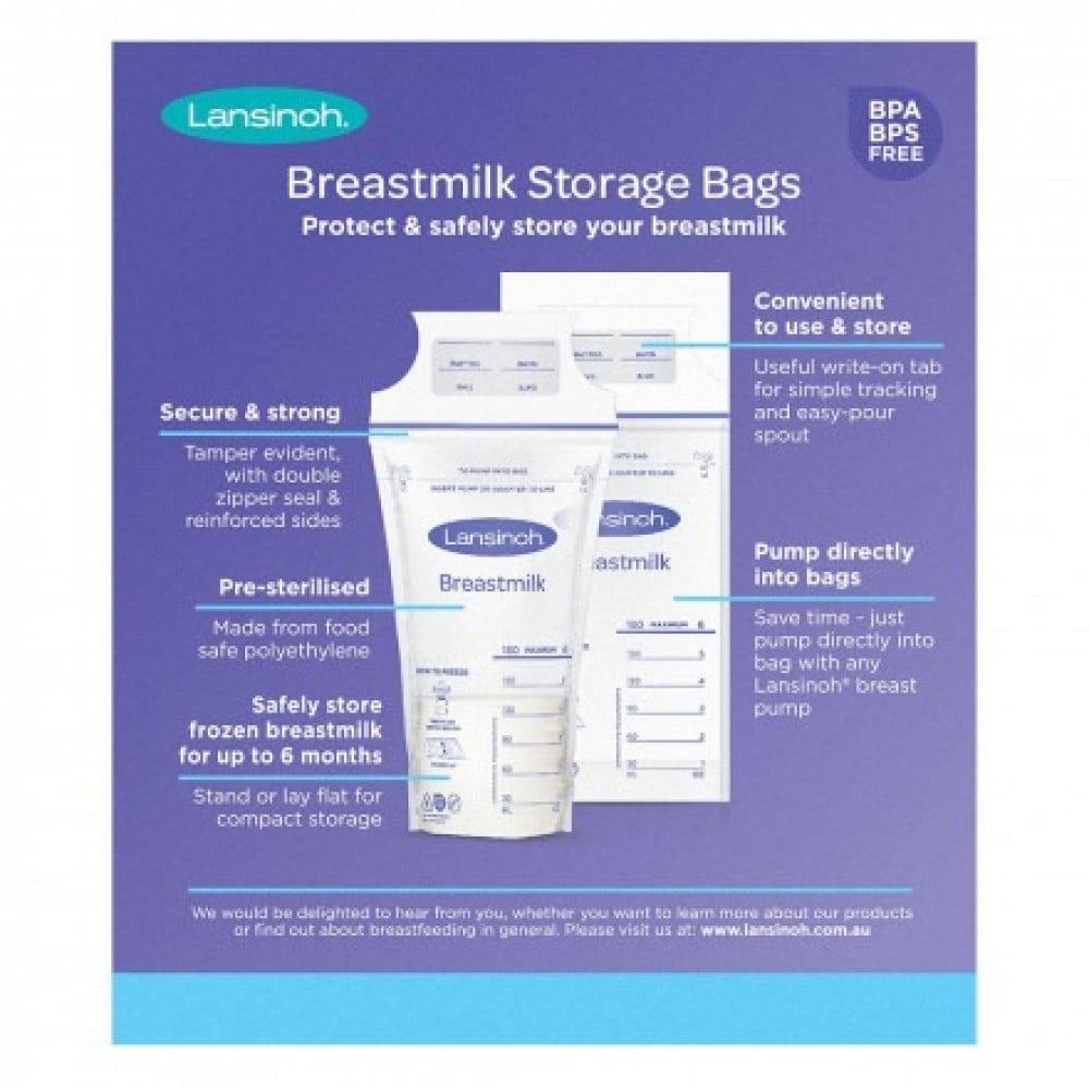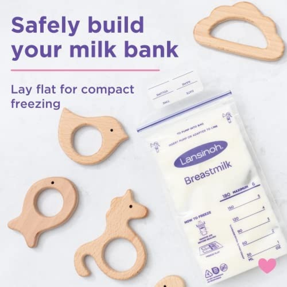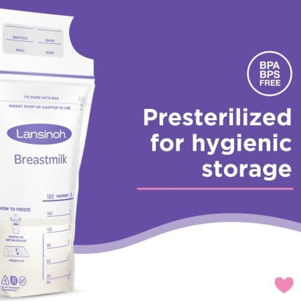 تم تطوير أكياس تخزين حليب الثدي من لانسينوه خصيصاً لتوضع في المجمدة وعند تخزينها بشكل مسطح فهي تأخذ مساحة أقل وتذوب بشكل أسرع. الأكياس الطبية مصنوعة من متعدد الايثيلين منخفض الكثافة دون أية ملدنات مما يعني عندم وجود أية مواد خطرة أو ضارة قد تتسرب إلى حليب الأم. تأتي معقمة مسبقاً وتمتلك سحّاب مزدوج يضمن قفل محكم لتخزين آمن لحليب الثدي. الشريط المفيد للكتابة عليه والموجود فوق منطقة التعبئة لتجنب ثقب الكيس يمكنك من تدوين التاريخ والوقت والسعة. أسفل الكيس المجمع يمكنه من التمدد أما فوهة الصب فهي مصممة لتمكن من نقل الحليب بشكل سريع وآمن.