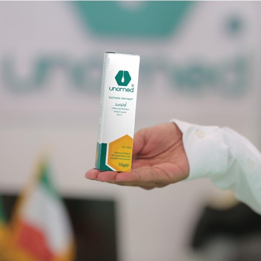 مرهــم أونومــد يحتــوي علــى عناصــر طبيعيــة مثــل عســل المانــوكا النيوزيلنــدي (ليبتوســبيرمم ســكوباريوم) وزيــت الجوجوبــا والمالتودكســترين الطبيعــي والتــي عــرف عنهــا تحــسين حالــة الجلــد المتأثر والمساعدة على سرعة تعافيه من الإحمرار والتهيج .