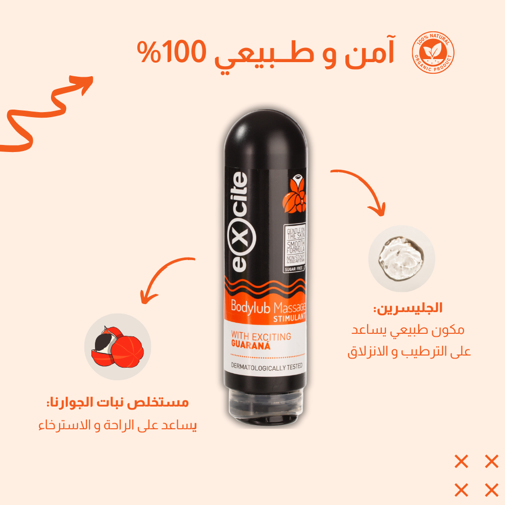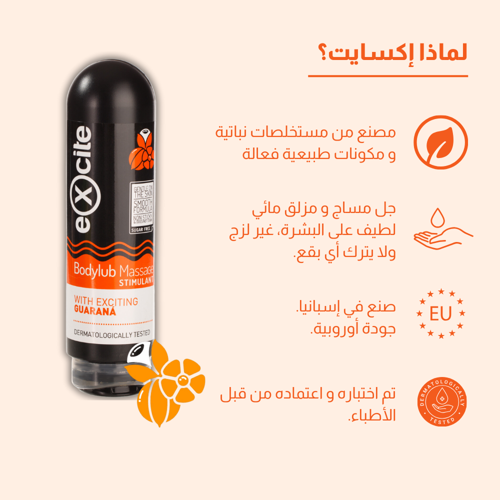 إكسايت مزلق مائي و جل مساج للجسم من مستخلص نبات الجوارانا الطبيعية. _ 200 مل Excite