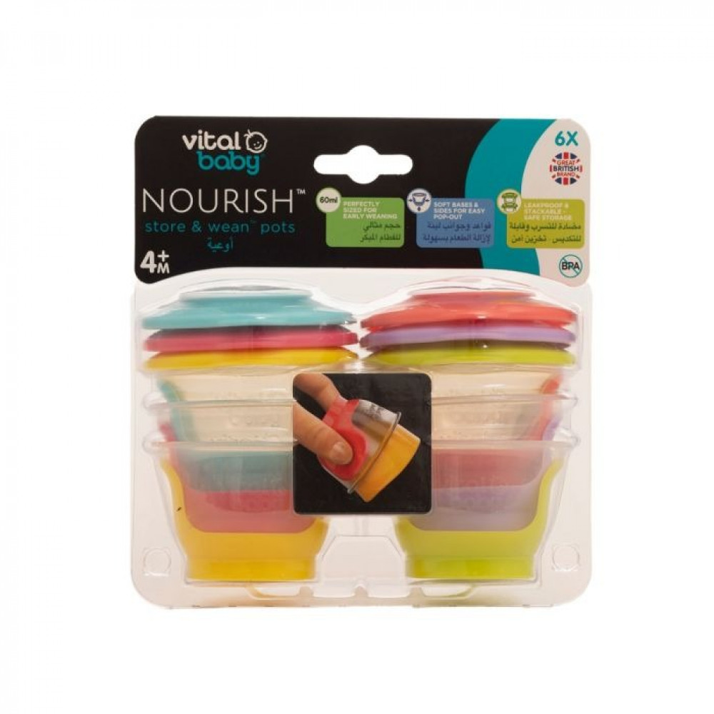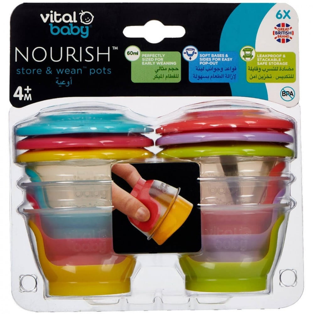 - إن أواني Baby® NOURISH ™ store & wean ™ الحيوية سعة 60 مل مناسبة تمامًا للفطام المبكر عندما يحتاج الطفل إلى كمية صغيرة فقط من الطعام.