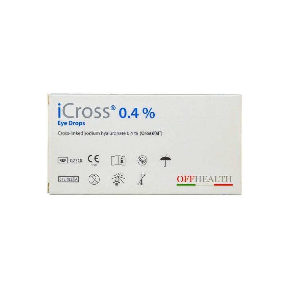 تحتوي قطرة اي كروس على حمض الهيالورونيك المتشابك، تركيز 0.4%، الذي يضمن درجة عالية من الترطيب والثبات على سطح العين، بما يمنع جفافها ويعزِّز ترطيبها، كما تحمي القرنية أيضًا.