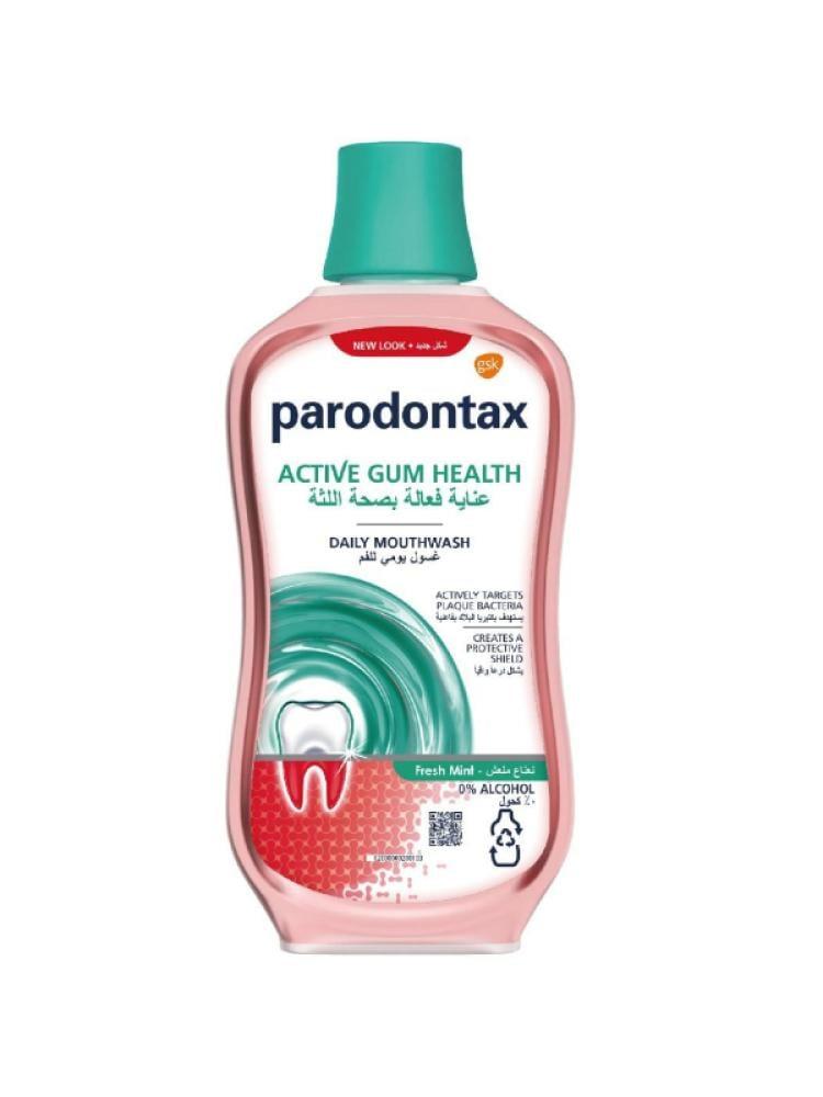 يُعد غسول بارودونتكس عناية فعالة بصحة اللثة خالٍ من الكحول، مما يجعله لطيفًا على اللثة ولا يسبب أي تهيج.