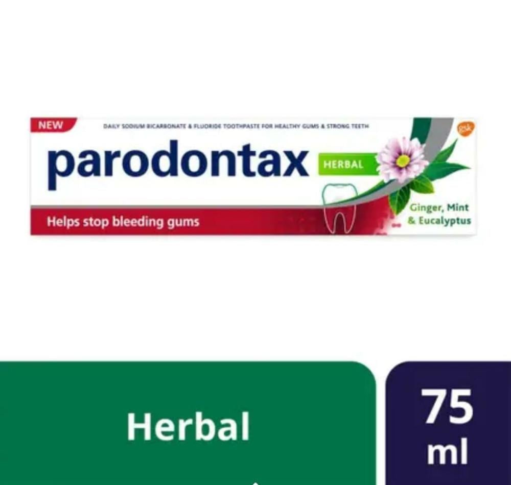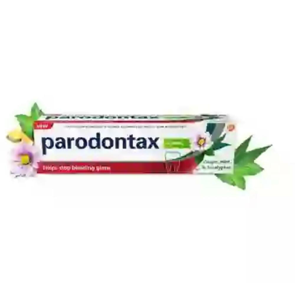 يحتوي معجون الأسنان بارودونتكس بالأعشاب على أملاح معدنية (بيكربونات الصوديوم) و ثبت طبيا أنه يساعد على وقف نزيف اللثة بالمساعدة على إزالة البكتيريا المتراكمة. كما يحتوي على مزيد فريد من النكهات المستخلصة من خلاصة الزنجبيل و الأوكالبتوس و النعناع مما يمنحك شعور بنظافة و انتعاش الفم و نكهة الأعشاب.
