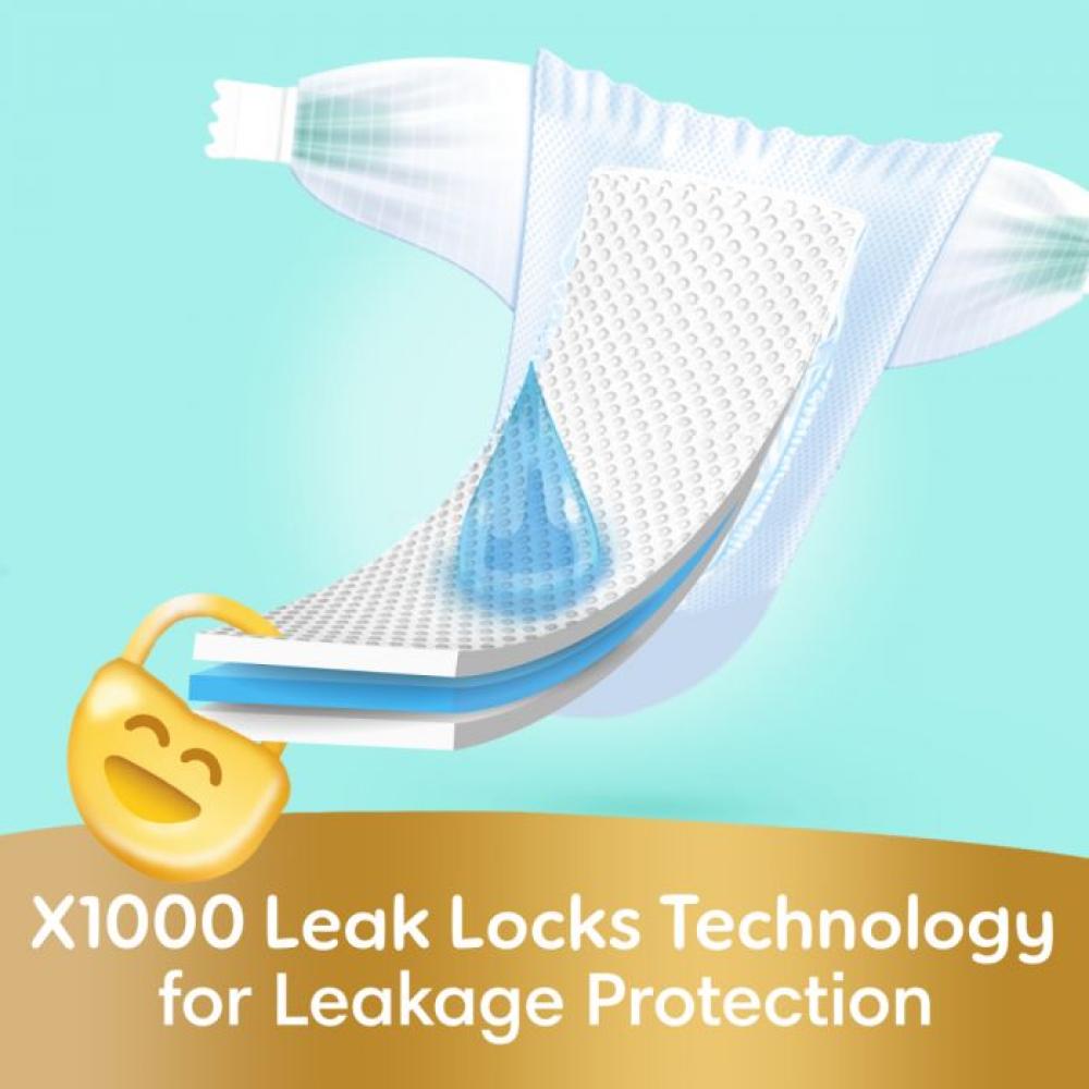 - تقنية جديدة ومطورة: تحمي هذه الحفاضات المزودة بتقنية ومواد جديدة من التسرب لتحمي طفلك بشكل لا مثيل له