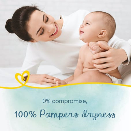 - لأن بشرة أطفالكم تستحق العناية، توفر حفاضات بامبرز بيور بروتكشن جفافًا يدوم حتى 12 ساعة.