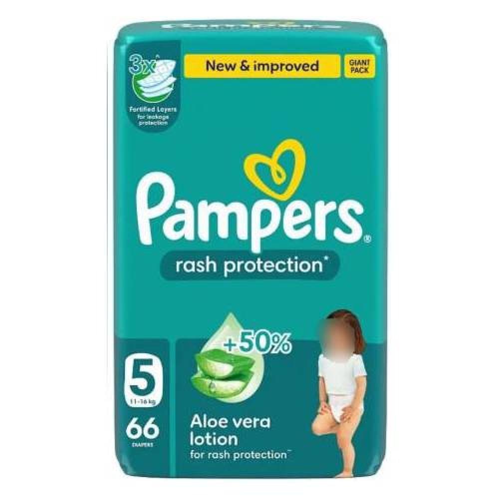 - توفر هذه الحفاضات بقياس 5 حماية فائقة بفضل طبقات 3 معززة و+50% بكريم الصبار لتهدئة البشرة. تحتوي الحفاضات على حراس تسرب مزدوجين ومواد تتمدد لضمان ملائمة مريحة، مما يسمح لطفلك بالحركة بحرية.