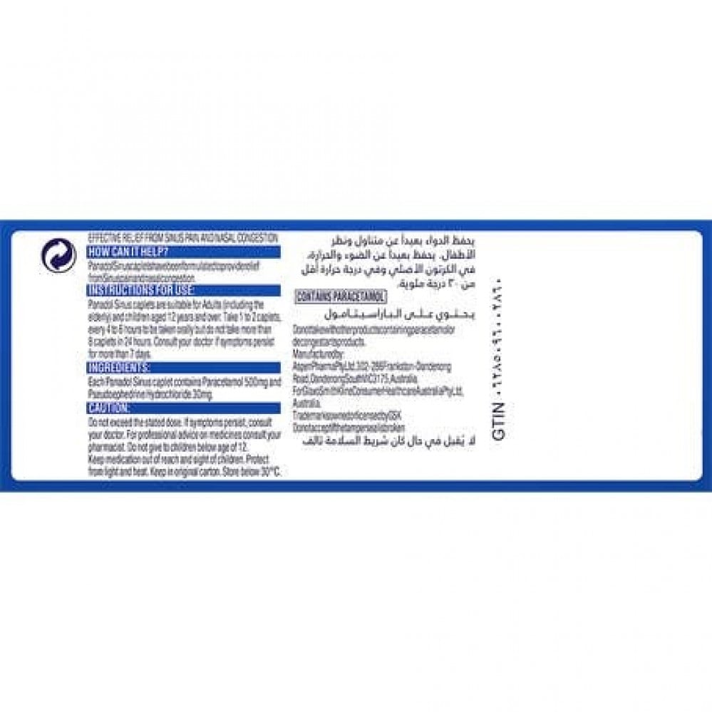 كل مضغوطة بانادول سينوس تحتوي على: