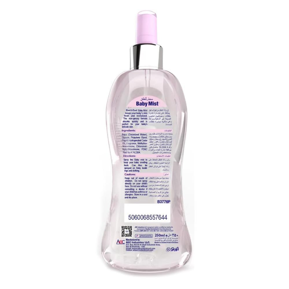 رذاذ كول بيبي هو تركيبة غير دهنية، ويحتوي على برو فيتامين الجلسرين، ويحافظ على بشرة الطفل نظيفة ومنتعشة.