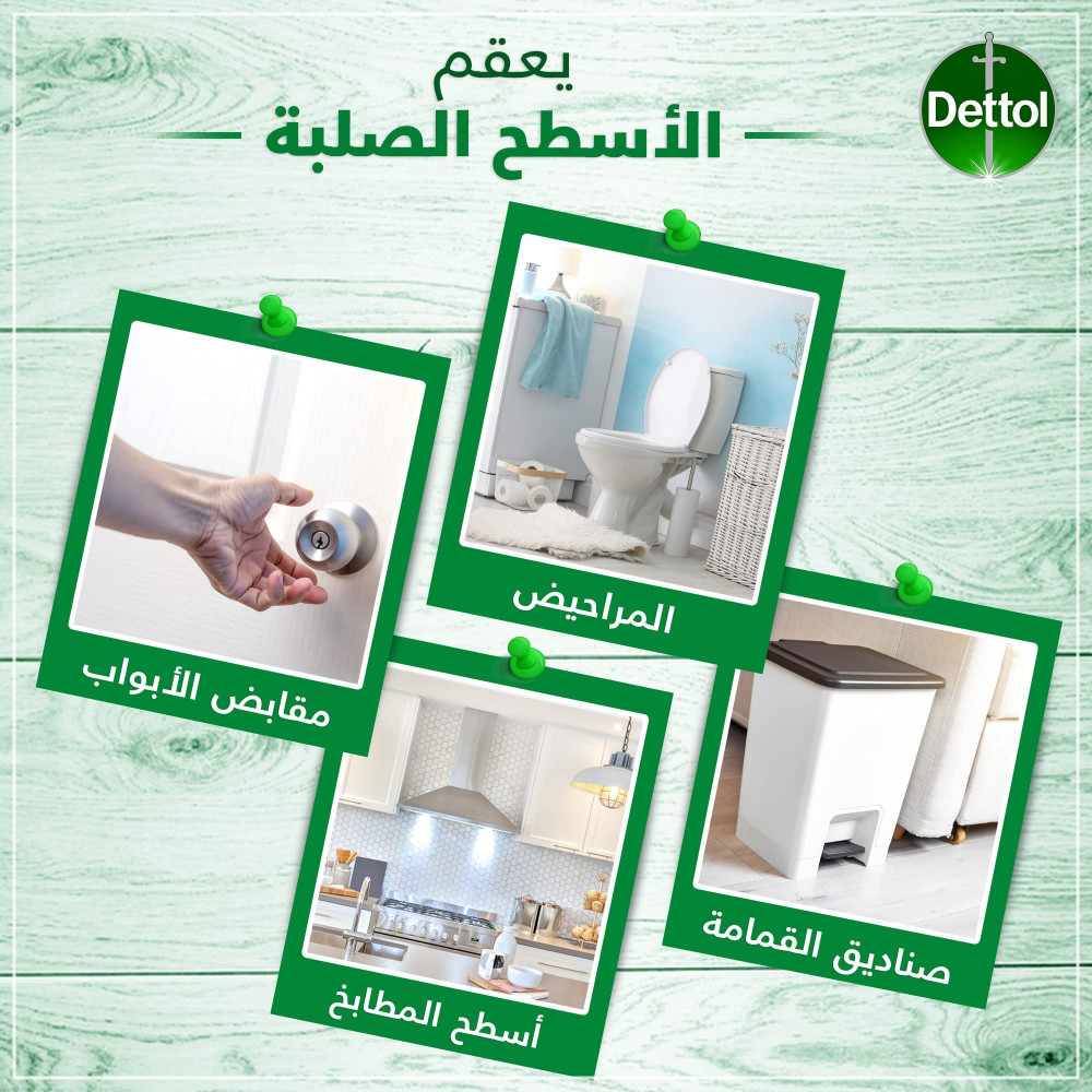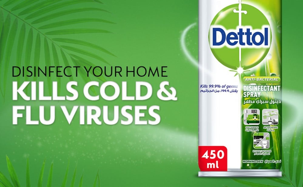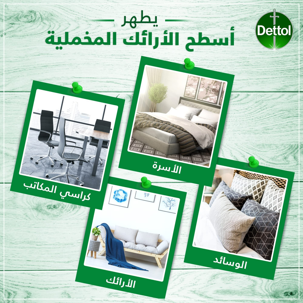 يمكن أن يساعد بخاخ ديتول المطهر على حماية أسرتك من الجراثيم من خلال المساعدة في منع انتشار البكتيريا والفيروسات الضارة. أثبتت تركيبة ديتول الفريدة أنها تقتل 99.9٪ من البكتيريا والفيروسات على الأسطح التي تتلامس معها كل يوم. البكتيريا والفطريات: هـ. القولونية ، السالمونيلا ، الليستيريا ، العنقوديات. فيروسات Aureusvirus: فيروس الأنف (السبب الرئيسي لنزلات البرد) ، فيروس الروتا (السبب الرئيسي للإسهال عند الأطفال) ، الفيروس المخلوي التنفسي (RSV - السبب الرئيسي لعدوى الجهاز التنفسي السفلي عند الأطفال) ، الفيروس الغدي من النوع 2 ، أنواع فيروس الهربس البسيط 1 و 2 ، فيروس التهاب الكبد أ ، أنفلونزا الطيور من النوع h1n1. مكان الاستخدام: المنزل: مقابض الأبواب ، والهواتف ، والأسطح الناعمة للأحذية: الأريكة ، والمراتب ، والألعاب اللينة ، الحمام: مقاعد المرحاض ، منطقة الاستحمام ، حوض الاستحمام ، المطبخ: سلة القمامة ، الأحواض ، تحت المغاسل.
