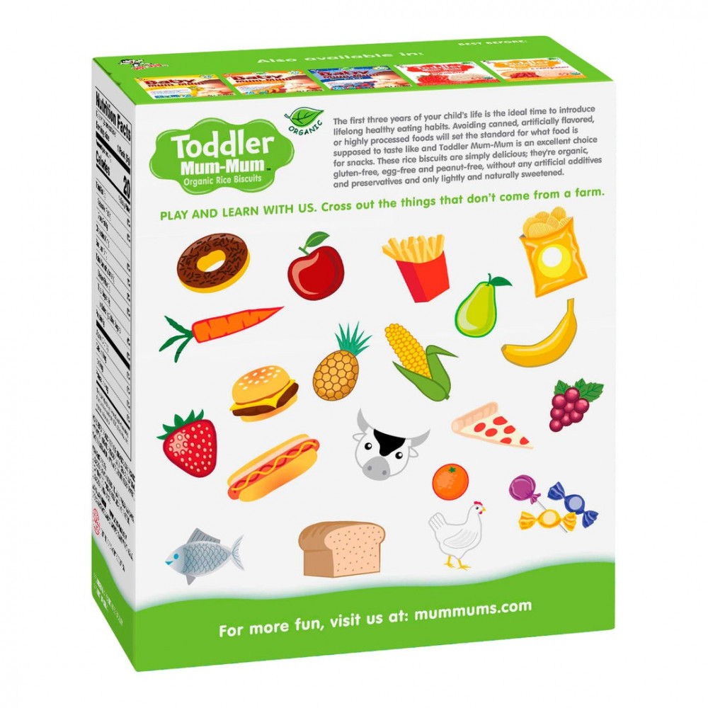 لقد انتقل طفلك الصغير من طفل إلى طفل صغير وهو الآن يمشي ويتحدث ويطعم نفسه! حان الوقت الآن للانتقال من Baby Mum-Mum إلى Toddler Mum-Mum Rice Biscuits ، وهي وجبة خفيفة لذيذة وطبيعية وممتعة لطفلك. مثالي لوقت الوجبات الخفيفة والرعاية النهارية ولعب المواعيد!