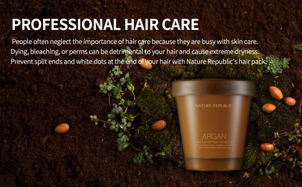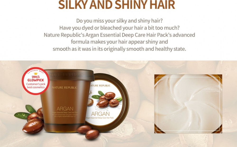 حزمة Argan Essential Deep Care Hair Pack عبارة عن قناع ترطيب مكثف يحتوي على نسبة عالية من زيت الأرغان وزيت ثمر الورد وخلاصة الجينسنغ.