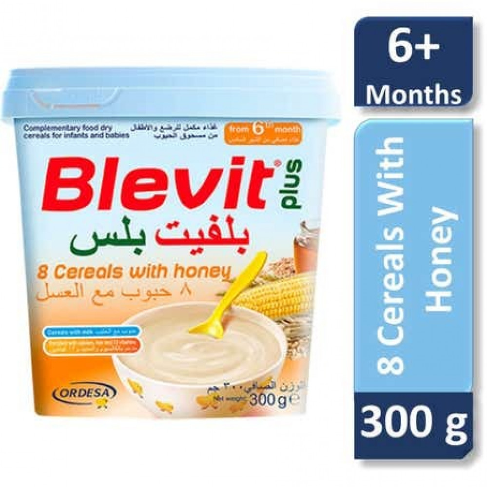 بليفيت بلص 8 الحبوب مع العسل هو بوريه مصنوعة من خليط متوازن من 8 حبات (القمح الكامل والأرز البني والشعير والجاودار والذرة والدخن والذرة الرفيعة والشوفان) والعسل ، والتي توفر رائحة لطيفة ونكهة ، وهذا يعني أن الطفل من المرجح أن يأكله وزيادة قيمته الغذائية.
