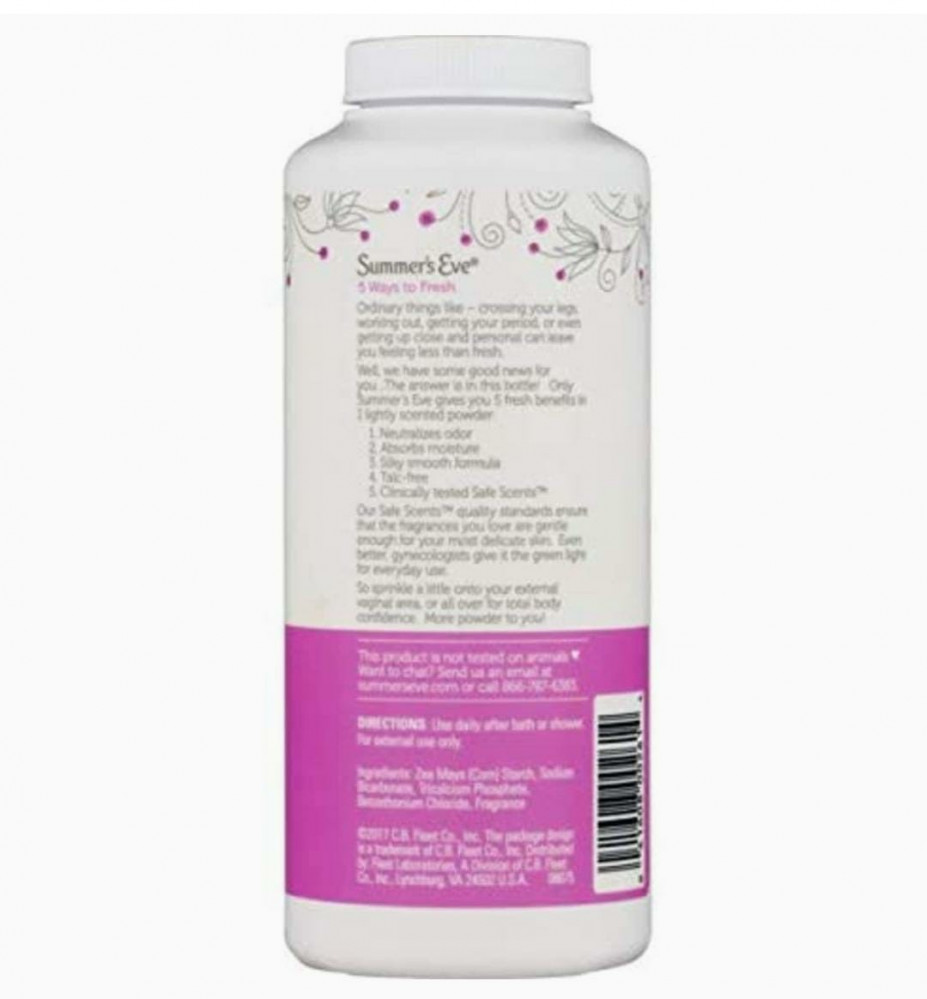 تم تصميم مسحوق Summer Eve للمساعدة في منع الرطوبة التي يمكن أن تؤدي إلى روائح محرجة بتركيبة خفيفة الوزن وناعمة كالحرير وخالية من التلك. البودرة المطحونة بدقة معطرة برائحة بخفة مع عطر Safe Scents تم اختباره سريريًا ولا يسبب التهيج أو التخمير أبدًا.