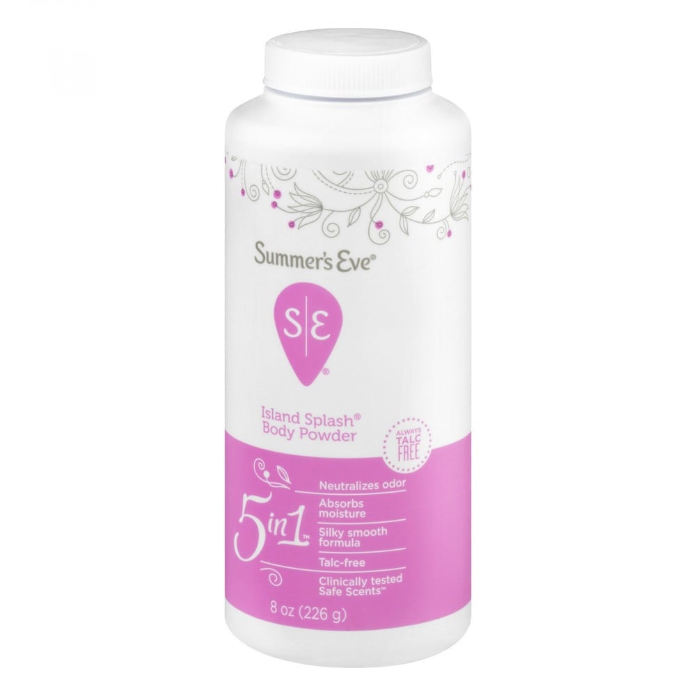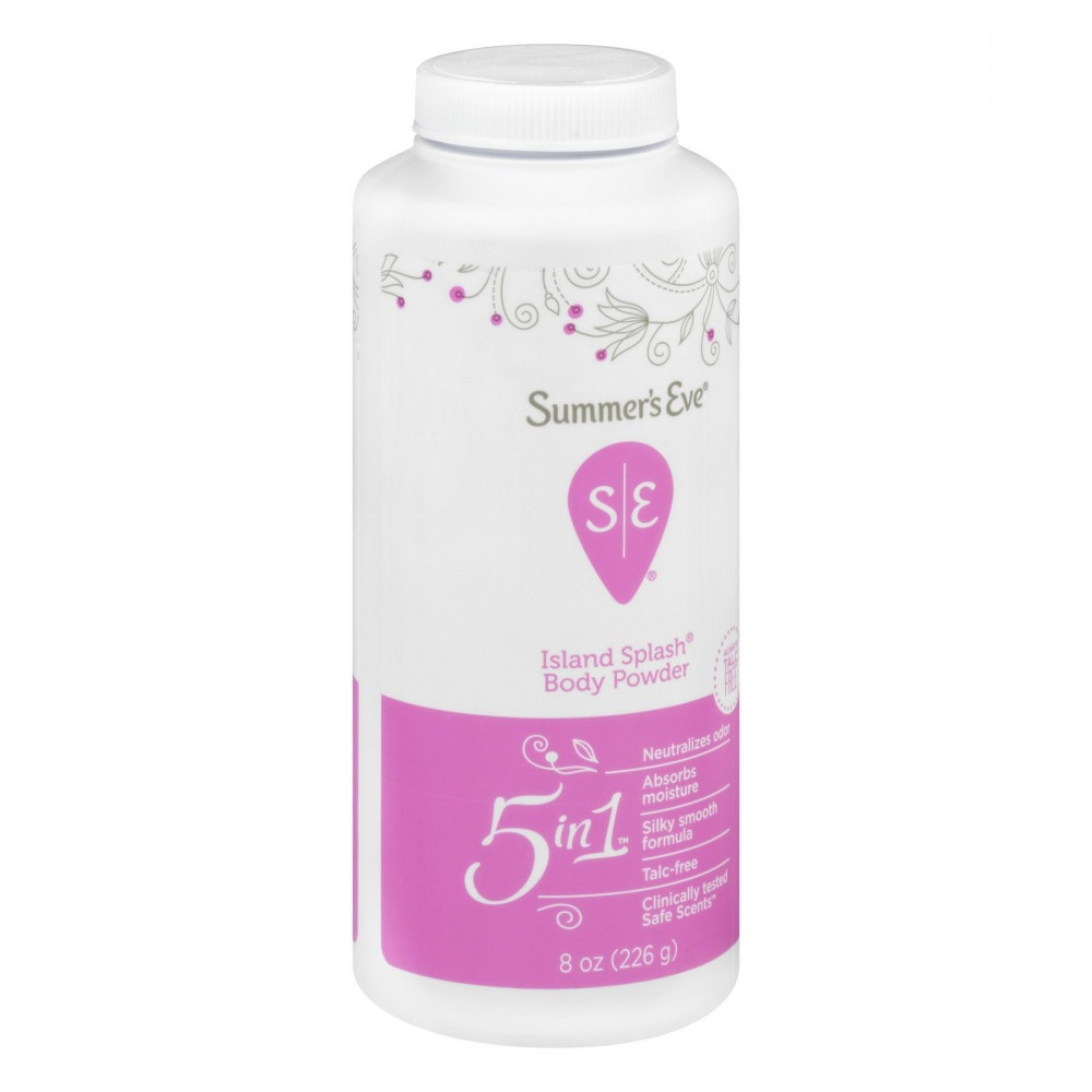حافظي على هدوئك وراحتك مع بودرة الجسم Summer's Eve Island Splash Body Powder. حواء الصيف هي واحدة من أكثر العلامات التجارية الموثوقة في مجال النظافة النسائية في العالم ، والتي أوصى بها أطباء أمراض النساء لتركيباتها اللطيفة والفعالة.