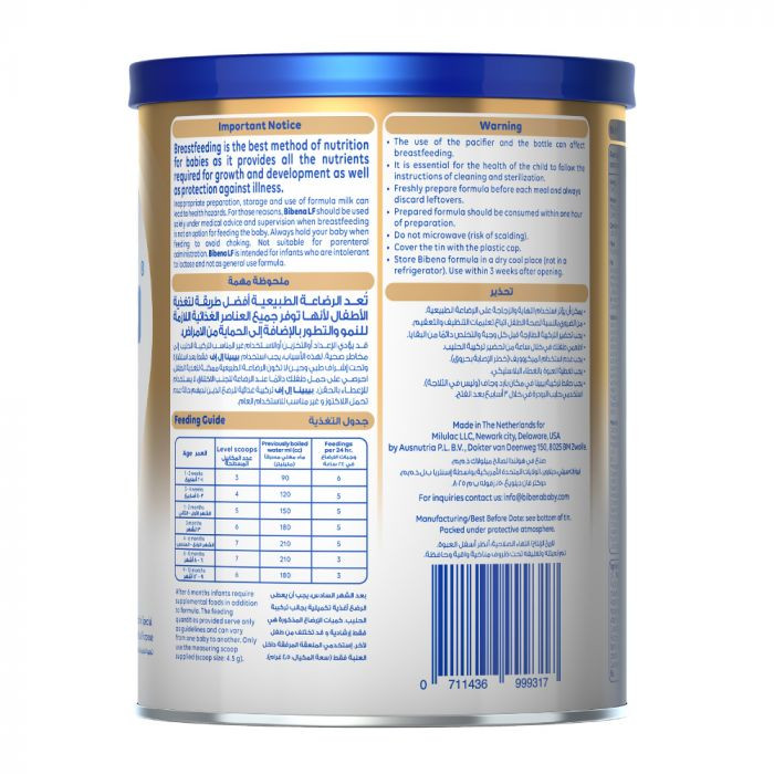 تحتوي بيبينا إل إف على جميع الفيتامينات والمعادن الأساسية لنمو صحي ، مع DHA لتنمية الدماغ والنيوكليوتيدات لدعم المناعة.