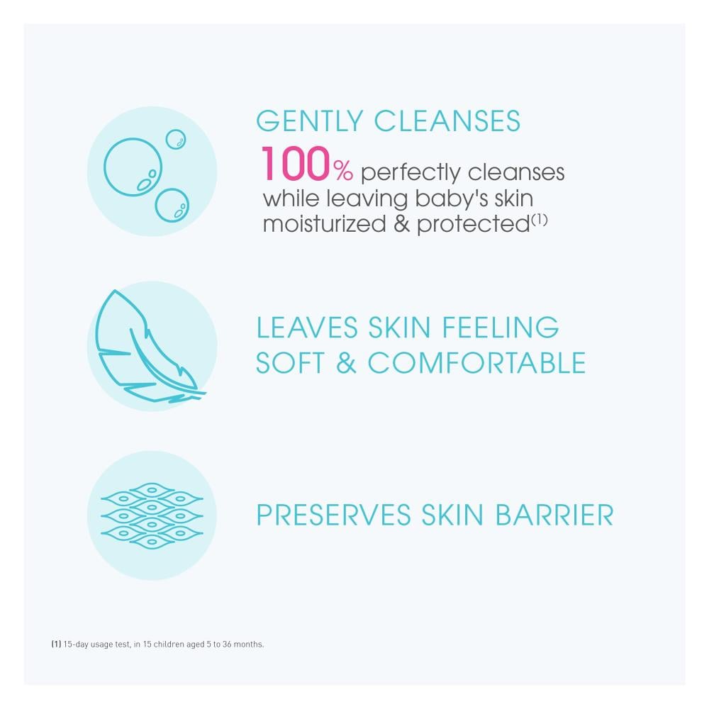 - [تركيبة لا تشطف] - غسول الأطفال يزيل بفعالية جزيئات الأوساخ في منطقة الحفاض وطيات البشرة ووجههم ويديهم دون الحاجة إلى الشطف.