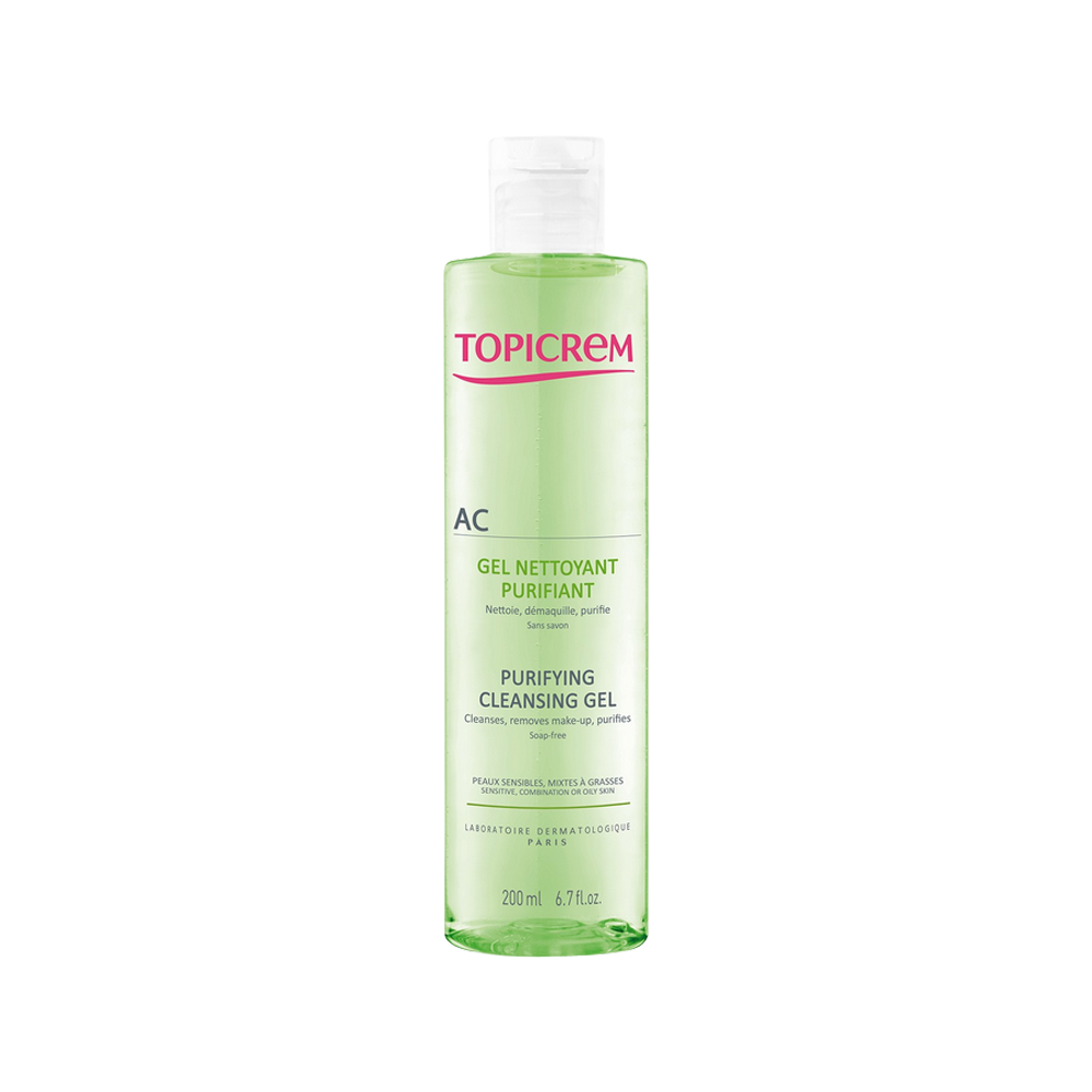 جل التنظيف المنقي Topicrem AC هو علاج لتنظيف الوجه تم تركيبه بدون صابون أو بارابين والذي يحرر البشرة بلطف من الشوائب والدهون الزائدة. فهو يزيل المكياج أيضًا. فهو ينظف وينقي البشرة دون الإضرار بها أو تجفيفها، مع مراعاة البشرة الأكثر حساسية وهشاشة. تساعد عملية التنقية لجل التنظيف Topicrem AC على فتح المسام للحد من ظهور عيوب البشرة مثل البثور أو الرؤوس السوداء على سبيل المثال. يصبح الجلد نقيًا ومنتعشًا وأكثر وضوحًا.