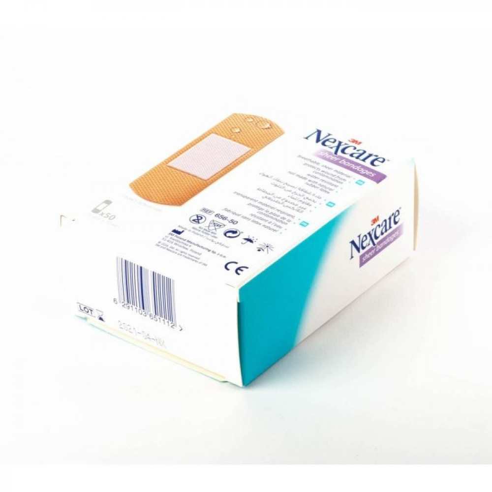• ضمادة نيكسكير الشفافة المقاومة للماء تحتوي على مادة شفافة قابلة للتهوية.