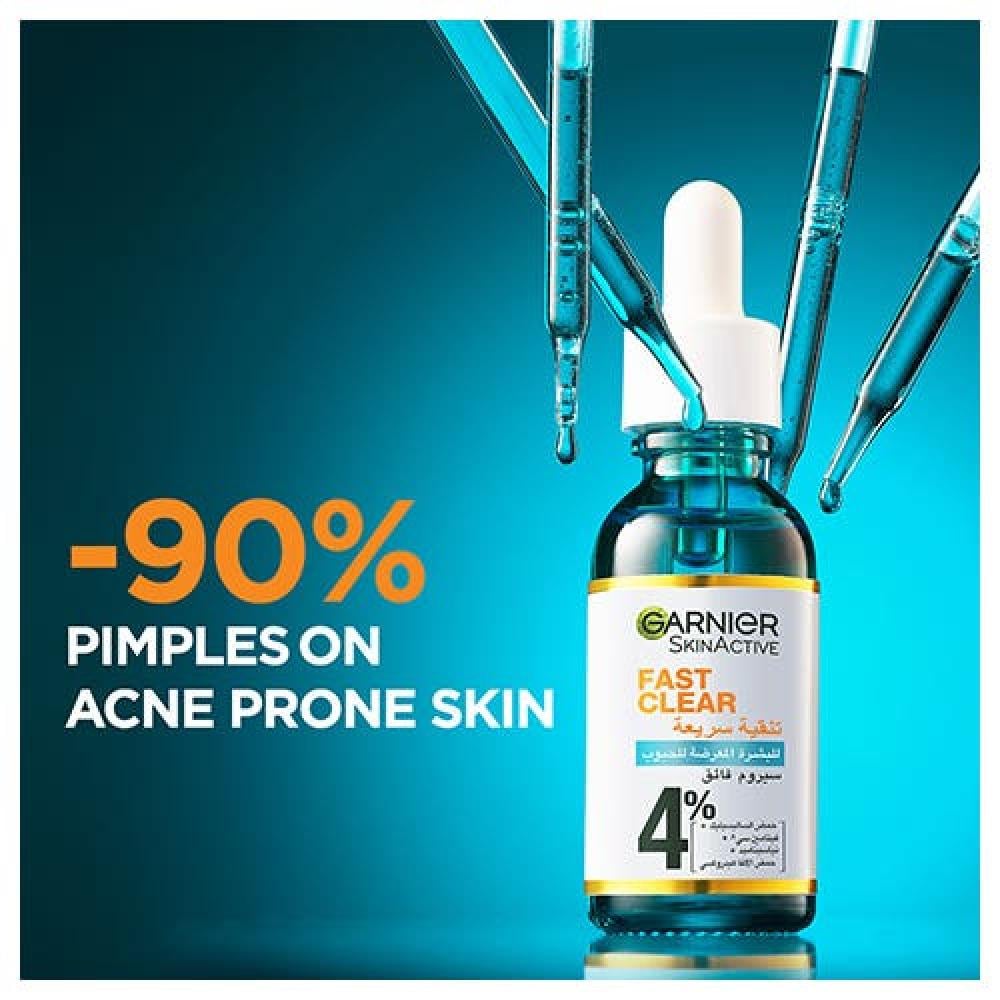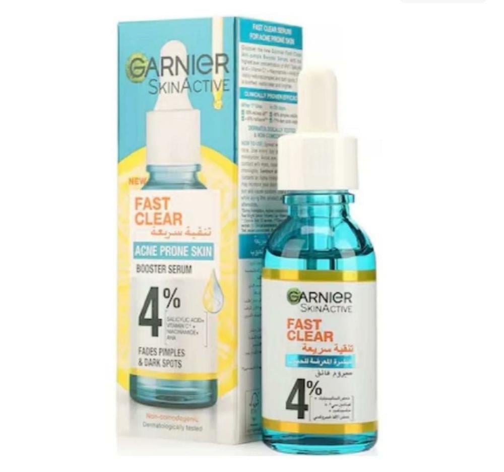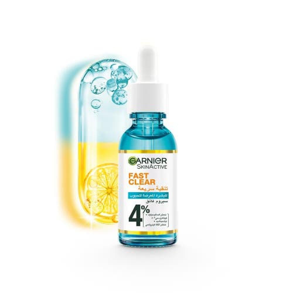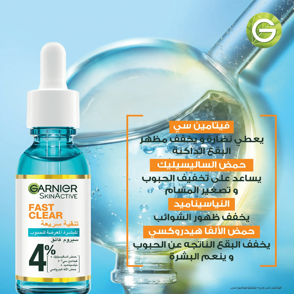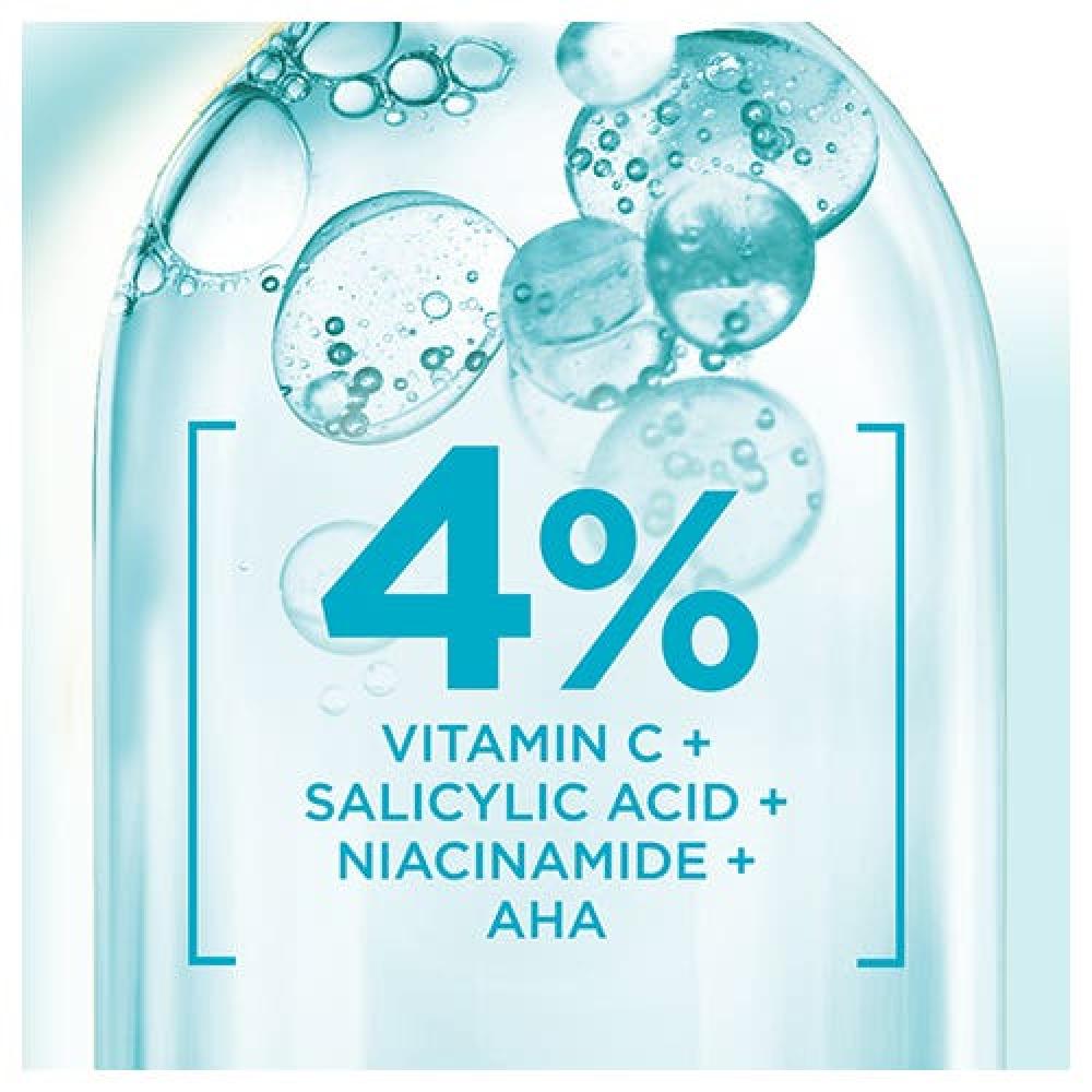 اكتشفي سيروم غارنييه الفائق الجديد بنسبة ٪٤* [حمض الساليسيليك + فيتامين سي^ + النياسيناميد + حمض الألفا هيدروكسي].