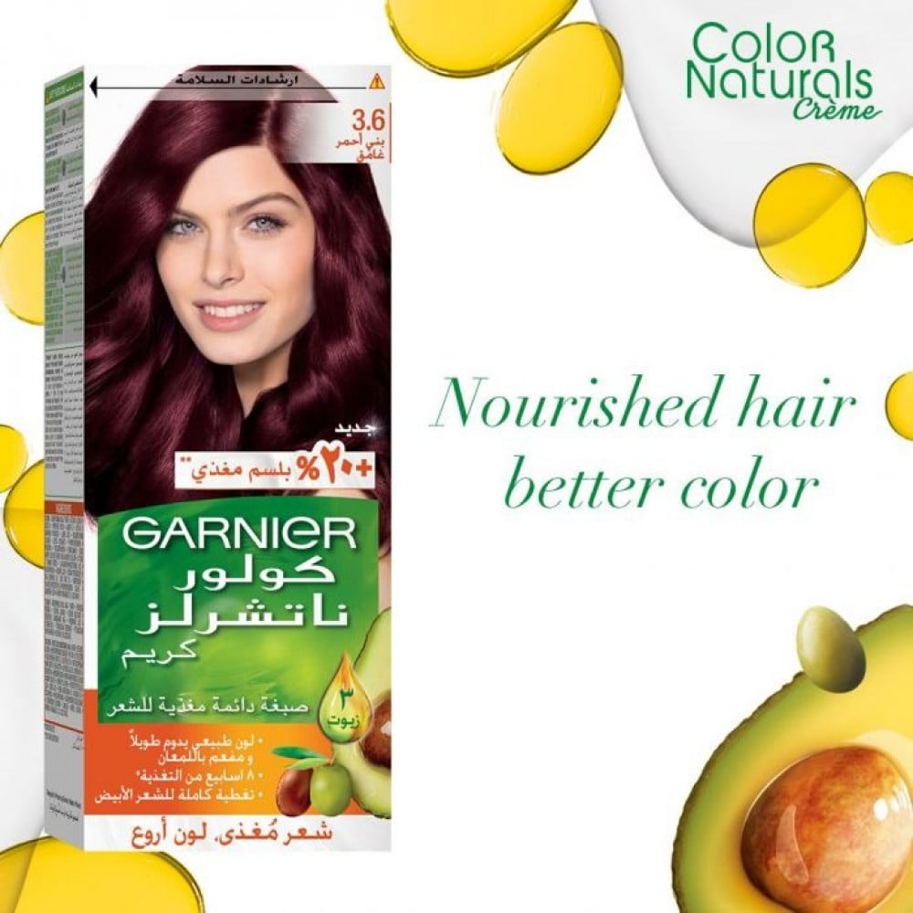 جارنييه، صبغة شعر، كولور ناتشرلز، بنى احمر غامق رقم 3.6 - 1 عبوة Garnier