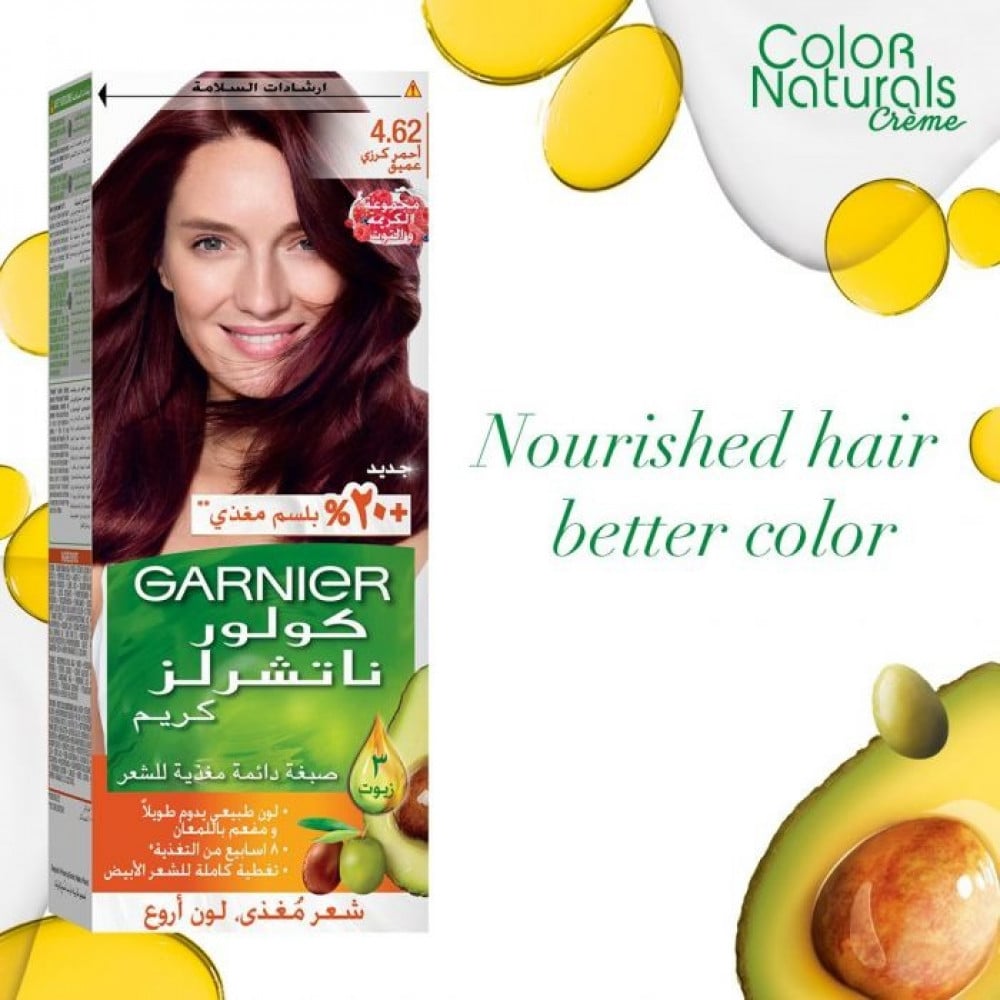 جارنيه كولورلز ناتشرلز كريم صبغة، تعتبر أول صبغة شعر دائمة مع زيت الزيتون المغذي للشعر.