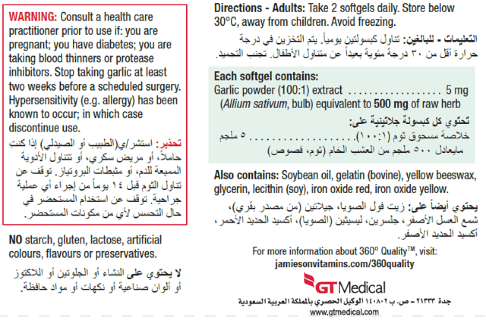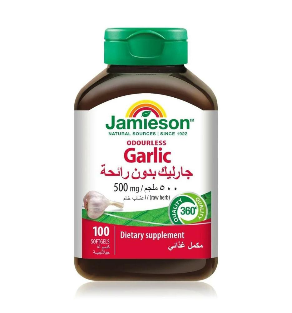 Jamieson Odorless Garlic 500 mg هو مكمل غذائي يوفر فوائد الثوم بدون رائحة قوية أو مذاق. تحتوي كل زجاجة على كبسولات الثوم التي وضعت خصيصا لتكون عديمة الرائحة، مما يجعلها وسيلة مريحة لدمج الفوائد الصحية للثوم في روتينك اليومي. تم استخدام الثوم تقليديًا لفوائده الصحية العديدة، بما في ذلك دعم صحة القلب والأوعية الدموية، ووظيفة المناعة، والرفاهية العامة.