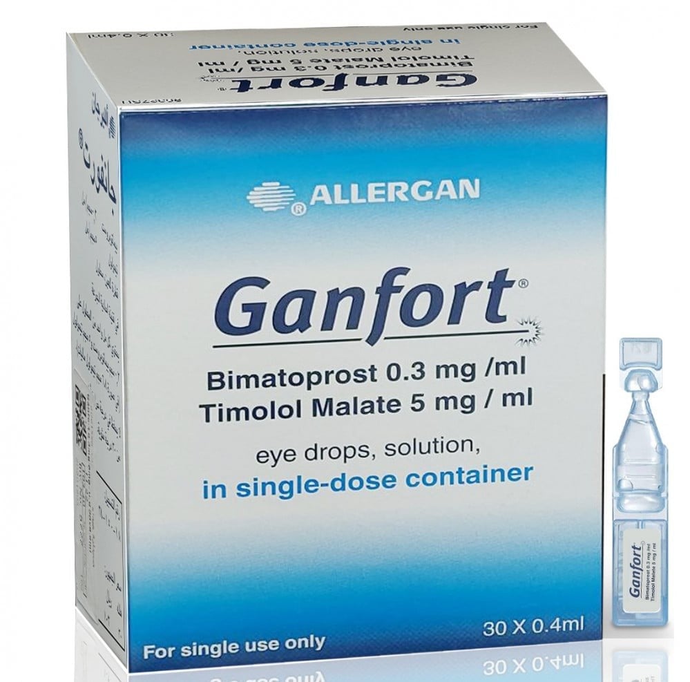 لم يكن التأثير الخافض لضغط الدم داخل العين لـ Ganfort أقل من تأثير العلاج المساعد باستخدام البيماتوبروست (مرة واحدة في اليوم) والتيمولول (مرتين في اليوم).