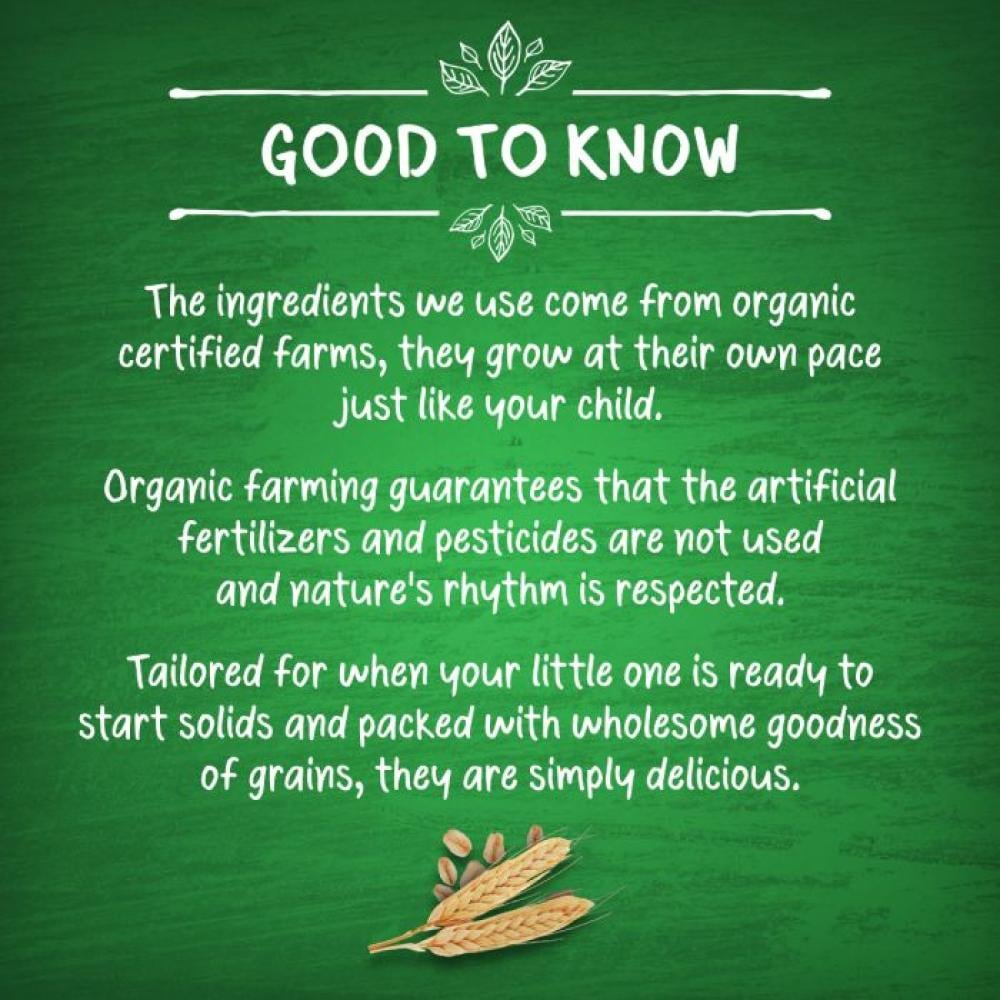 - الحبوب العضوية المستخدمة في هذه الحبوب تجعلها طعامًا صحيًا لخدمة طفلك.
