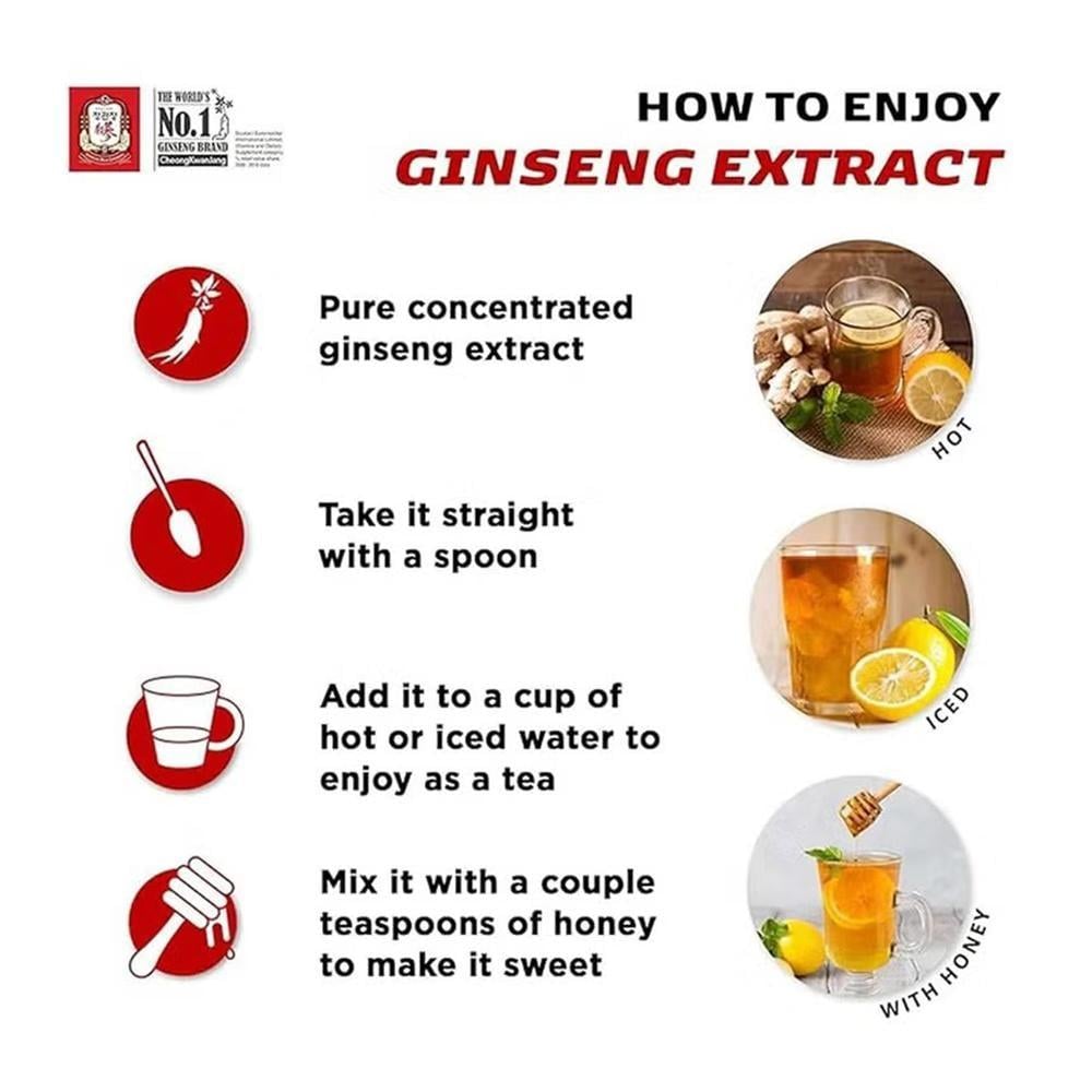 تركيبة من الجينسنغ الأحمر الكوري بنسبة 100% مع عصير الرمان المركز