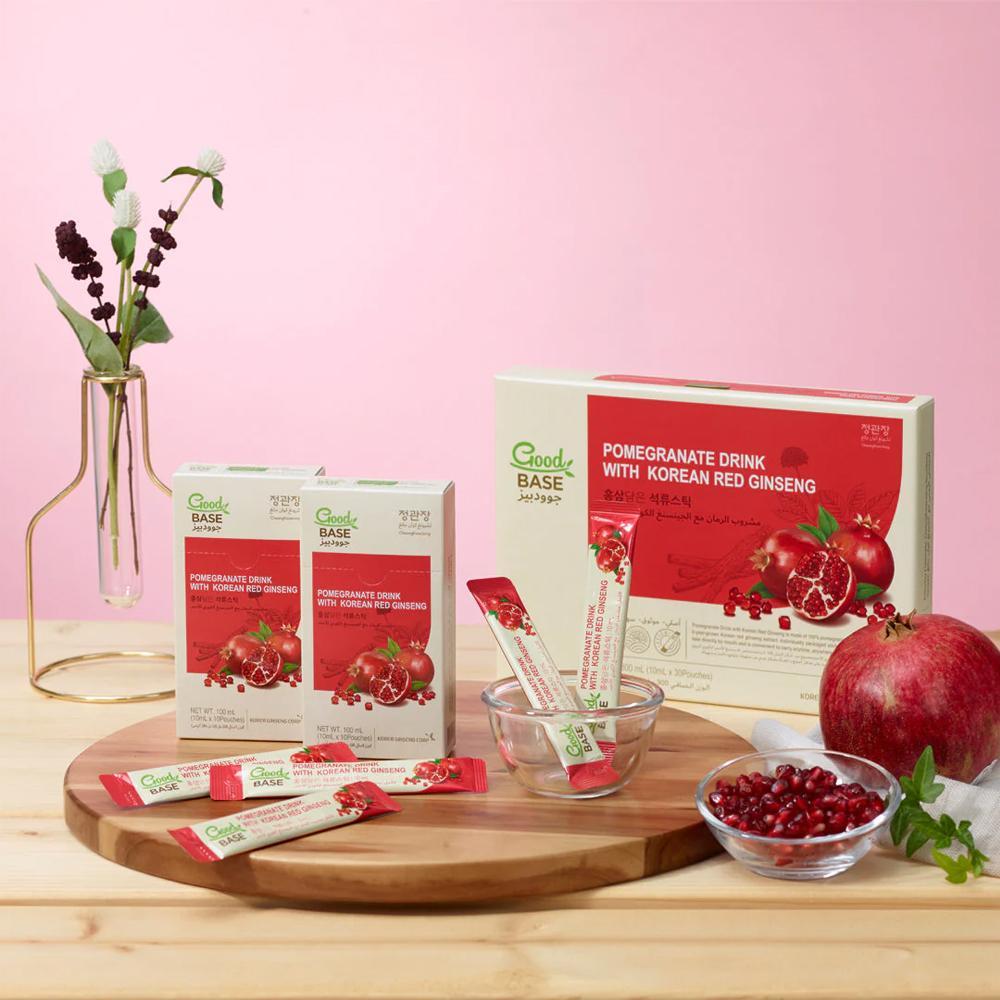 هذا المشروب يجمع بين فوائد الجينسنغ الأحمر الكوري والرمان الإيراني عالي الجودة، لدعم المناعة، تحسين الدورة الدموية، وتغذية البشرة.