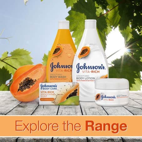 يمنح صابون سائل الاستحمام Vita-Rich نعومة من جونسون بشرتك الجافة ترطيباً يدوم طويلاُ بقوامه الغني واللطيف.غني بالبابايا الذي يقشر ويشد البشرة بالإضافة إلى الجلسرين المُرطب، يعمل صابون سائل الاستحمام Vita-Rich نعومة من جونسون على تغذية بشرتك بفعالية ويمنحها الراحة لمدة 24 ساعة.يتميز صابون سائل الاستحمام Vita-Rich نعومة من جونسون بتركيبة غنية وقوام ناعم وعطر لذيذ فيمنح بشرتك شعوراً بالصحة والحيوية بالإضافة إلى نعومة ملموسة.استخدمي صابون سائل الاستحمام Vita-Rich نعومة من جونسون للحصول على بشرة برائحة عطرة ومظهر صحي!المواصفات:• تركيبته تمنح بشرتك راحة تدوم 24 ساعة• تركيبة غنية ومخملية لترطيب كثيف• يحتوي على البابايا والجلسرين