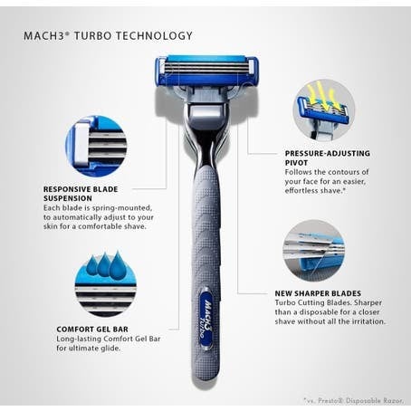 •  تتميّز بطبقة متقدّمة مانعة للاحتكاك تسمح لماكينة ماك 3 تربو أن تزيل كل شعرة مع أقلّ تهيّج وراحة أكبر.