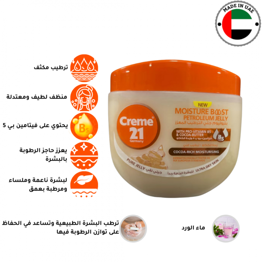 كيف تستعمل: ابدأ ببشرة نظيفة وجافة. يمكنك غسل بشرتك بمنظف لطيف وتجفيفها بالتربيت عليها قبل وضع الفازلين Creme 21.