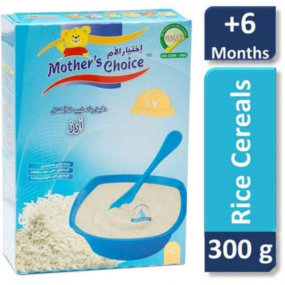 - وحبوب الأرز للأطفال من انتاج شركة ماذرس تشويس (اختيار الأم) أحسن وجبة يمكن أن تقدميها لطفلك في عمر 4 أشهر كأول وجبة صلبة صحية ومفيدة.