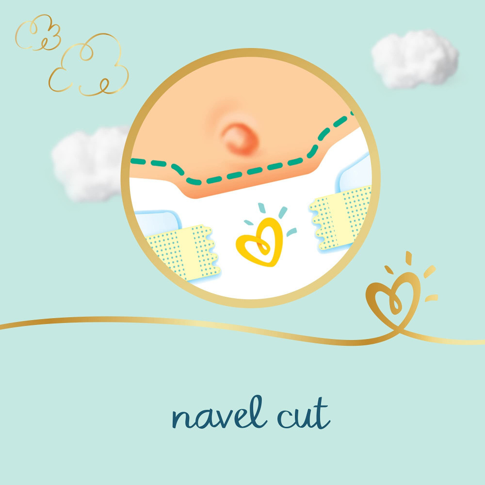 • NAVEL CUT: تصميم خاص لحديثي الولادة حفاضات بامبرز بريميوم كير تحمي بطن طفلك بمقاس مناسب تمامًا لضمان راحة طفلك في جميع الأوقات.