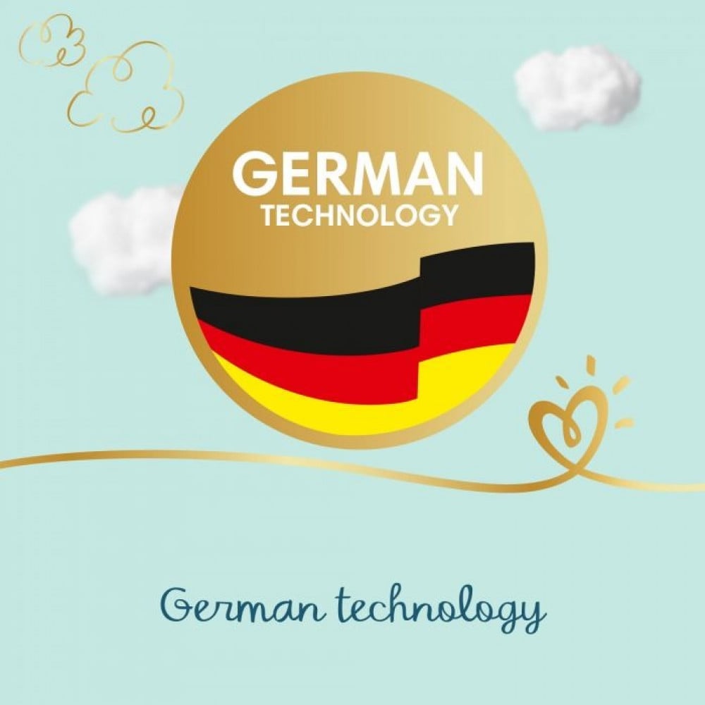 • تكنولوجيا ألمانية: مصممّة ومعزّزة بتكنولوجيا ألمانية لضمان جودة أعلى، فهي تضمن لك ألا تقلقي من أي تسرّب عندما يتعلق الأمر بتحركات طفلك.
