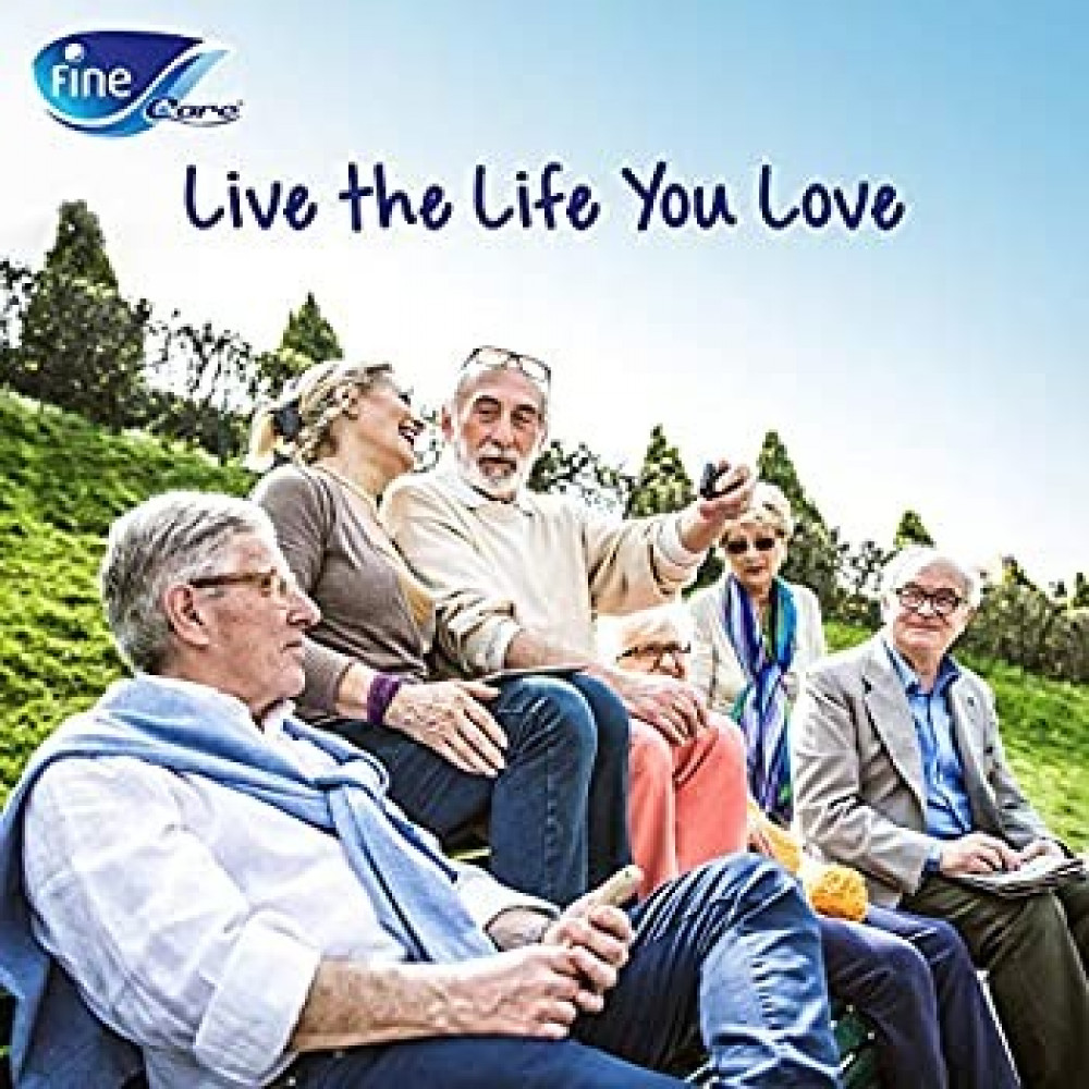 - صُممت حفاضات فاين كير للكبار مع ملاءة خلفية من القماش توفر أقصى درجات الراحة وصامتة أثناء الحركة.