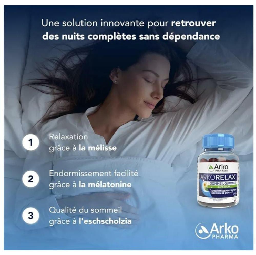اكتشف حلوى أركوريلاكس® للنوم: المكمل الغذائي المثالي لعلاج اضطرابات النوم، متوفر في علبة تحتوي على 30 حلوى. يحتوي على الميلاتونين، المعروف بقدرته على تقليل وقت النوم عند تناوله قبل النوم مباشرة. مستخلصات بلسم الليمون، والزيزفون، والإيششولتسيا تساعدك على الاسترخاء وتحسين جودة نومك. ويكمل فيتامين ب6 هذه القائمة، لاستعادة وظائف الجهاز العصبي السليم. لا تسبب حلوى أركوريلاكس® للنوم النعاس أو التعود عليها خلال النهار. مناسب للأطفال من سن 15 عامًا: تناول حبة أو حبتين قبل النوم مباشرة. مختبرات أركوفارما المعتمدة متخصصة في الحلول الطبيعية منذ أكثر من 40 عامًا، لتوفير راحة عميقة ودائمة.