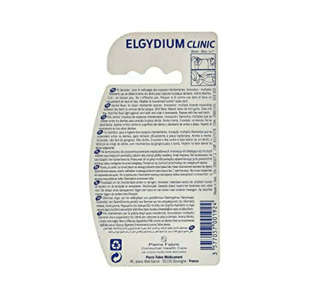 خيط تنظيف الأسنان ELGYDIUM هو خيط تنظيف أسنان مضاد للبلاك ، مع 276 خيطًا ناعمًا يمتد للاستخدام لتغطية سطح أكبر من الأسنان وإزالة البلاك. إنه شديد التحمل وشامل قليلاً ، حتى لا يضر الأسنان واللثة الحساسة.