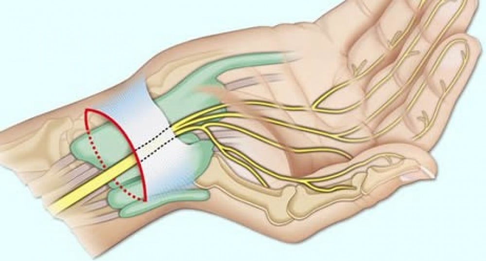 · ومتلازمة النفق الرسغي، وكسور المعصم، وحالات ما بعد الجبس.