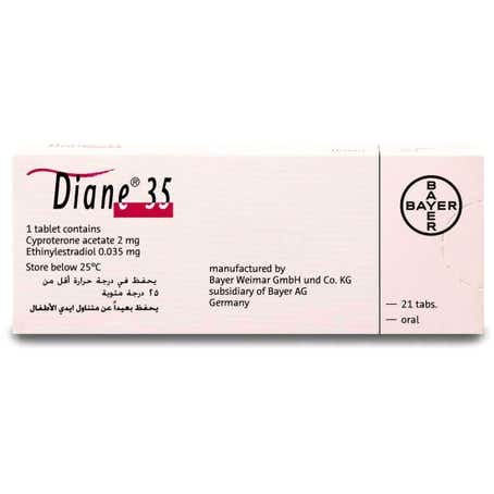 • Diane 35 Tablet 21 عبارة عن مزيج من عقارين هرمونيين ، إيثينيل إستراديول ، وسيبروتيرون.