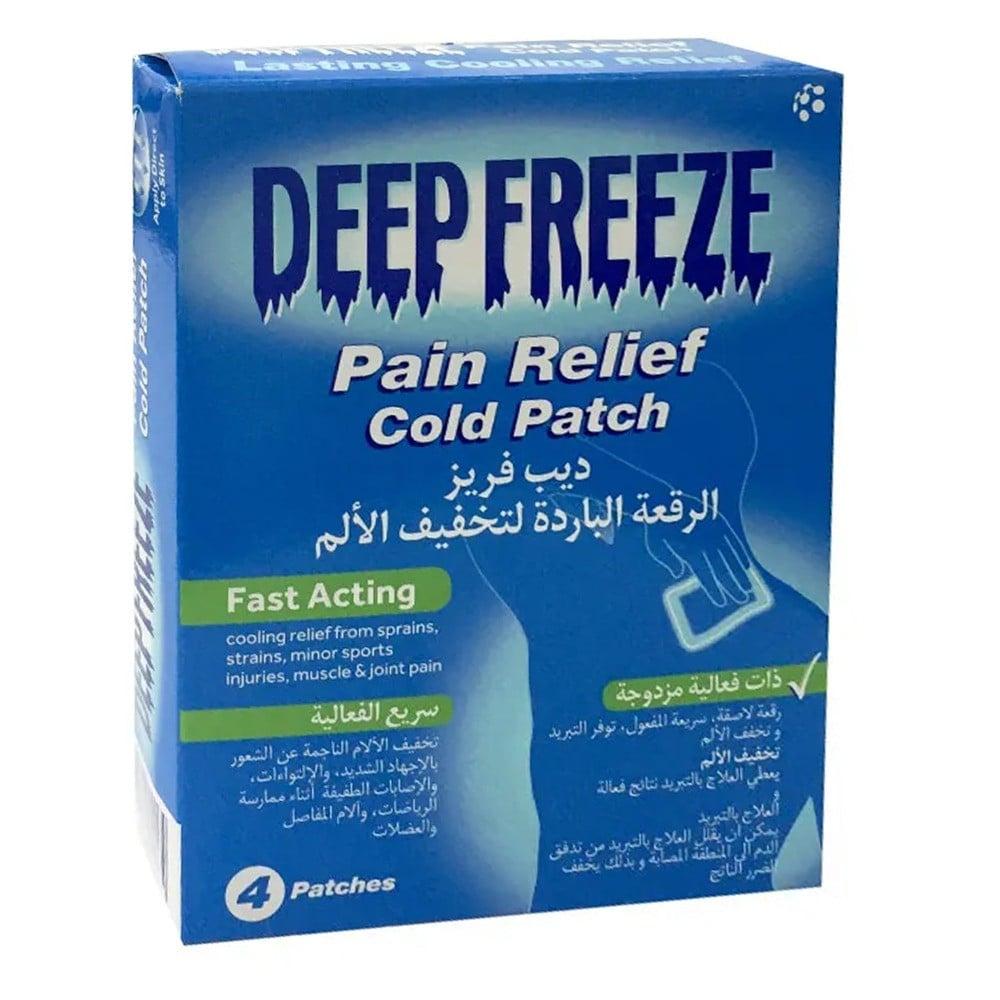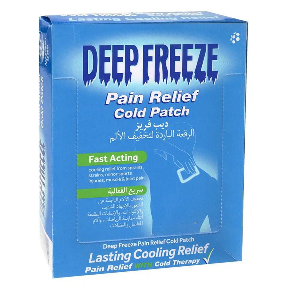 ديب فريز رقع لصق بارد لتخفيف الآلام deep freeze pain relief cold patch على الفور مع العلاج بالتبريد لتخفيف الآلام العضلات , الإلتواءات , الإجهاد ’ الإصابات الرياضية الصغيرة , المفاصل والعضلات .