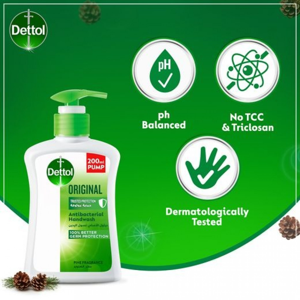 دائمًا ما تتطلب الأهداف والأحلام الكبيرة قوة وحماية أفضل من الجراثيم المسببة للأمراض. غسول اليدين ديتول أوريجينال (الأصلي) يعمل على التأكد من الحفاظ على صحتك دائمًا من خلال منحك حماية أفضل من الجراثيم بنسبة 100٪. يجمع غسول اليدين بين الحماية الموثوقة من الجراثيم من ديتول ورائحة الصنوبر ليمنحك الحماية ليديك و يحافظ على ترطيبهم و نعومتهم. يحافظ سائل ديتول لغسل اليدين على درجة حموضة بشرتك ويتركها أكثر نعومة وصحة مع كل غسلة لليدين. غسول اليدين السائل خالي من التراي كلو كاربان والتراي كلوسان للحفاظ على صحة أسرتك ونظافتها الصحية. استكشف أيضًا مجموعة منتجات ديتول مثل – سائل غسيل اليدين القابل لإعادة التعبئة، الصابون سائل لغسل اليدين ، قالب الصابون المضاد للبكتيريا وللعناية بالبشرة ، منظفات منزلية متعددة الأغراض ، منظفات للأرضيات ، البخاخ المعقم المطهر ، معقم اليدين ، جل الاستحمام ، غسول الجسم ، منظفات الحمام ، منظفات المطبخ ، بخاخات التنظيف ، المناديل المطهرة للإستخدام الشخصي والأسطح، ومعطرات الجو. الآن دعونا نسعى بجد نحو غد أفضل من خلال غسل اليدين والحفاظ على نظافة محيطنا مع ديتول