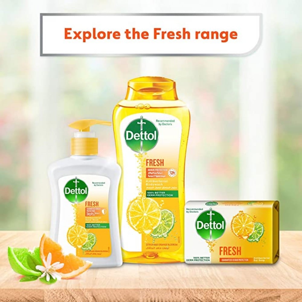 صابون ديتول منعش بعطر الحمضيات المنعشة و حماية ديتول الموثوقة من الجراثيم يساعد البشرة على الاحتفاظ برطوبتها لتبقى باحساس يفيض بالصحة و الانتعاش.