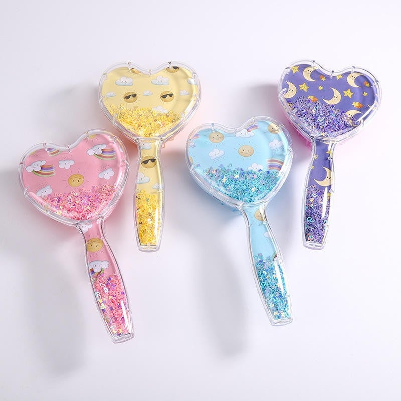 قلب الحب اللامع القابل للاهتزاز سيتحرك أثناء قيامك بالفرشاة، لا يوجد سائل في المشط، هدايا رائعة للفتيات الصغيرات.