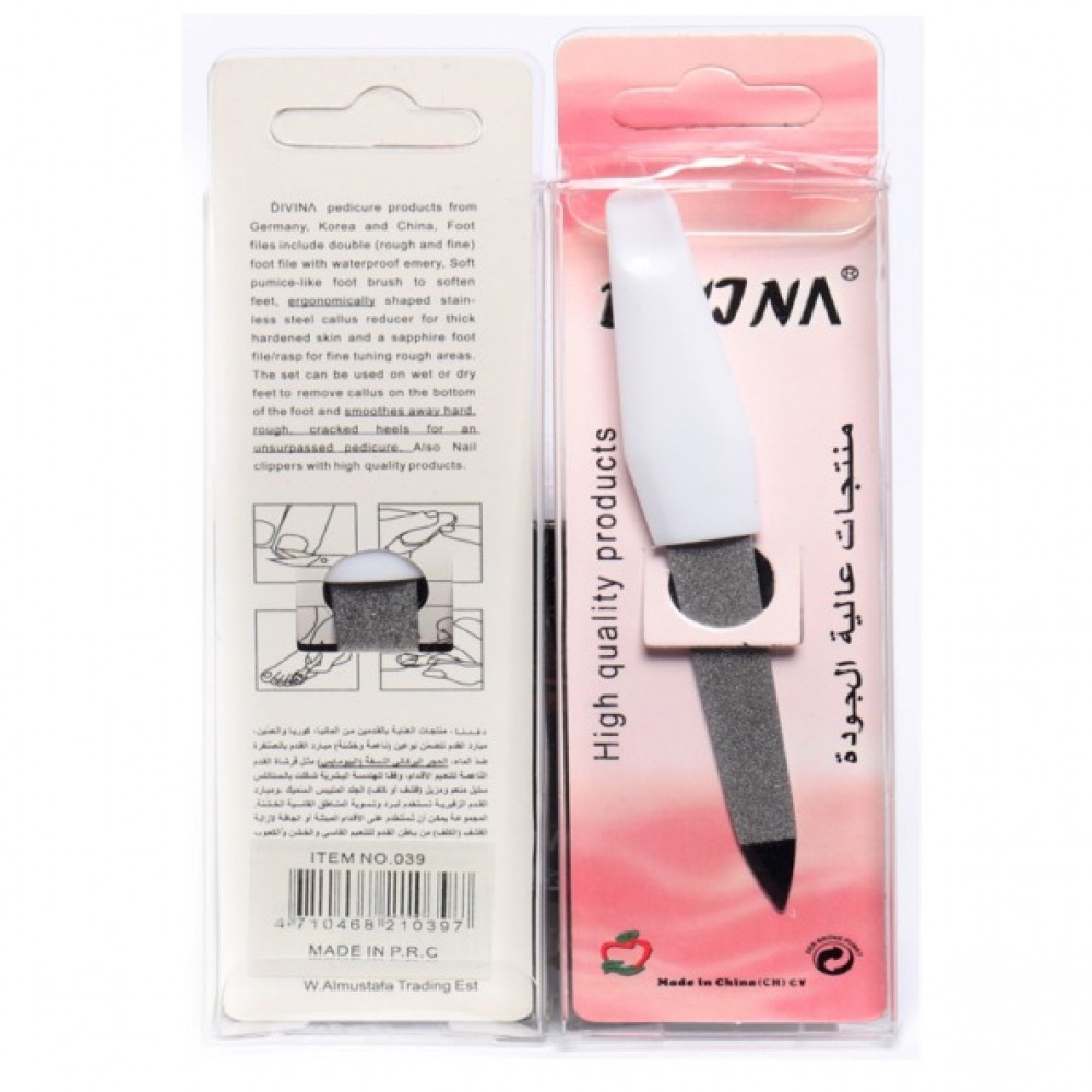 مبرد أظافر معدني مقاوم للصدأ مع قبضة بلاستيك., لإعطاء شكل وينعم الأظافر من الحواف.